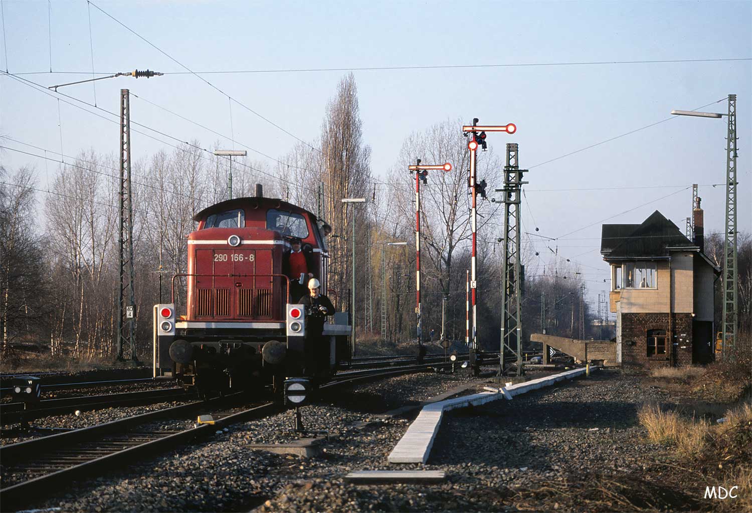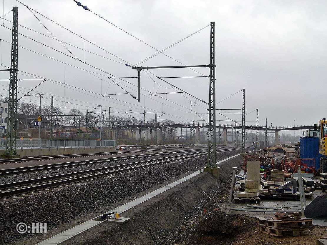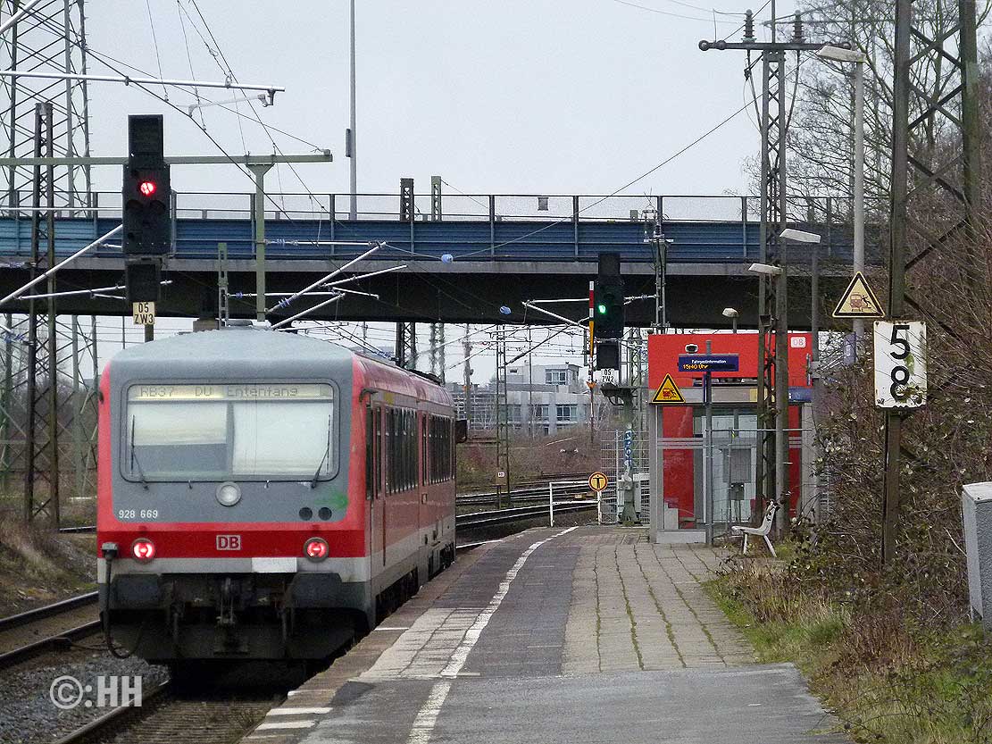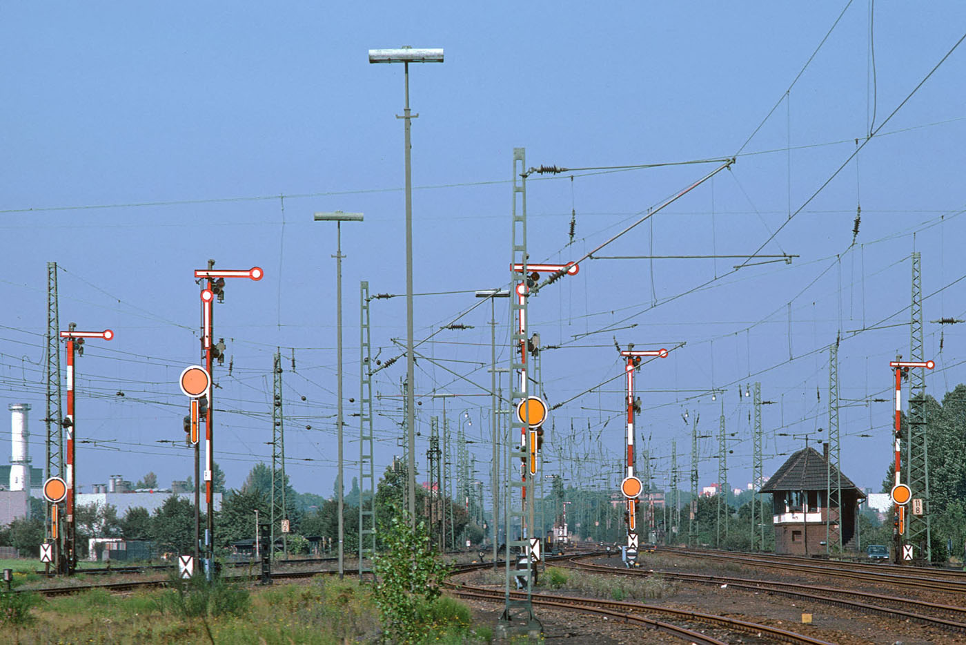 km 0,40 der Strecke Duisburg-Wedau 0,40 - Abzw. Oberbaurat Sigle 6,16 - Abzw. Mathilde 11,76 - Oberhausen Hbf 14,0 | ||