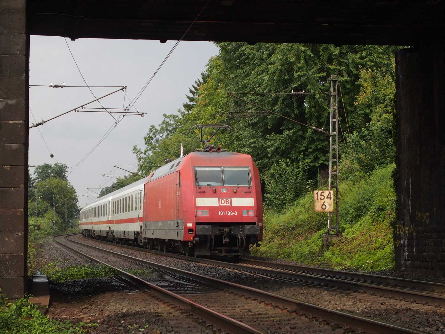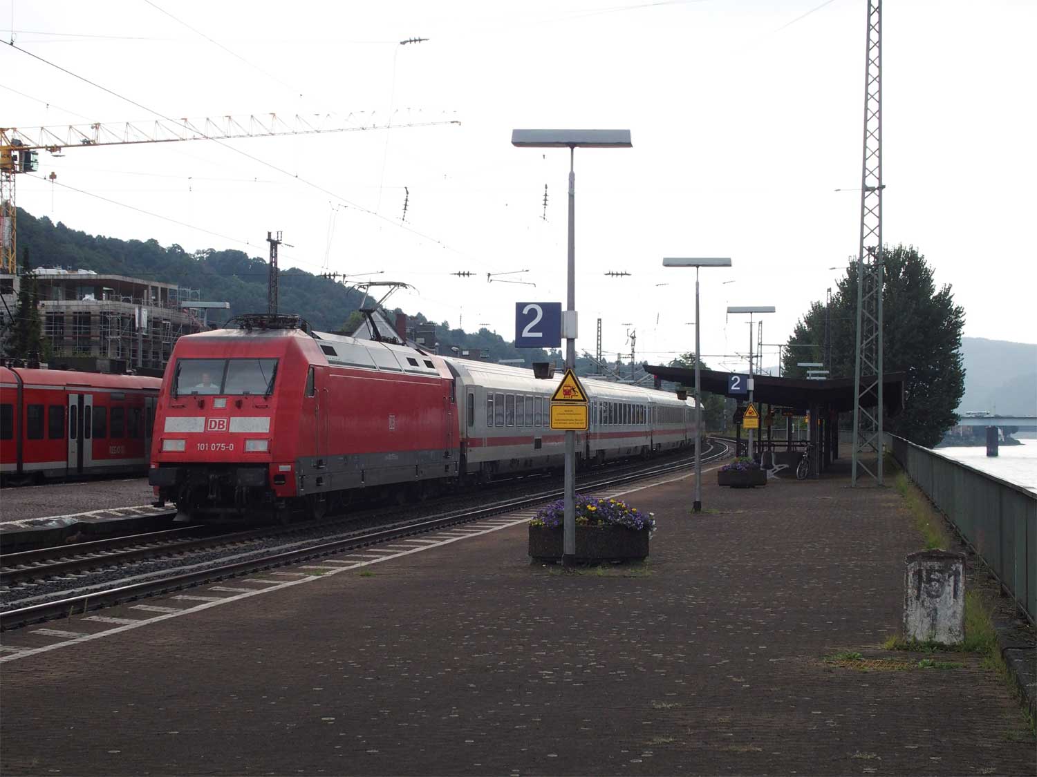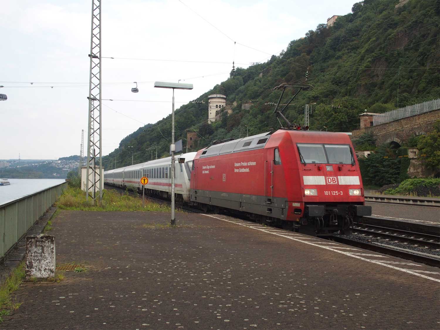 km 151,1 in Koblenz-Ehrenbreitstein - 101 125 mit umgeleitetem IC 2217 (nicht sichtbar schiebt 101 023)