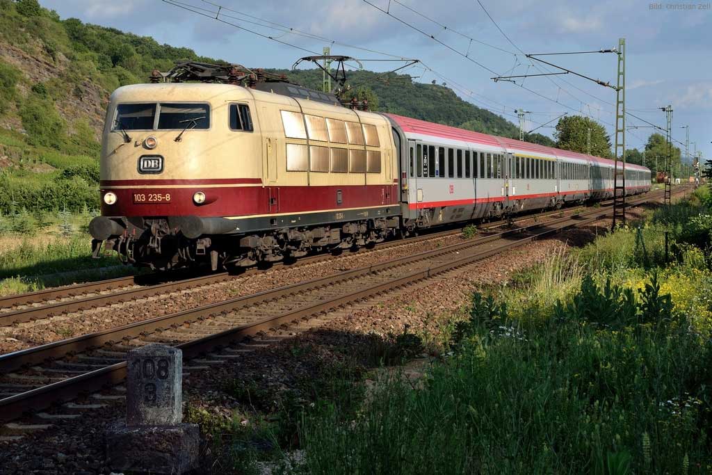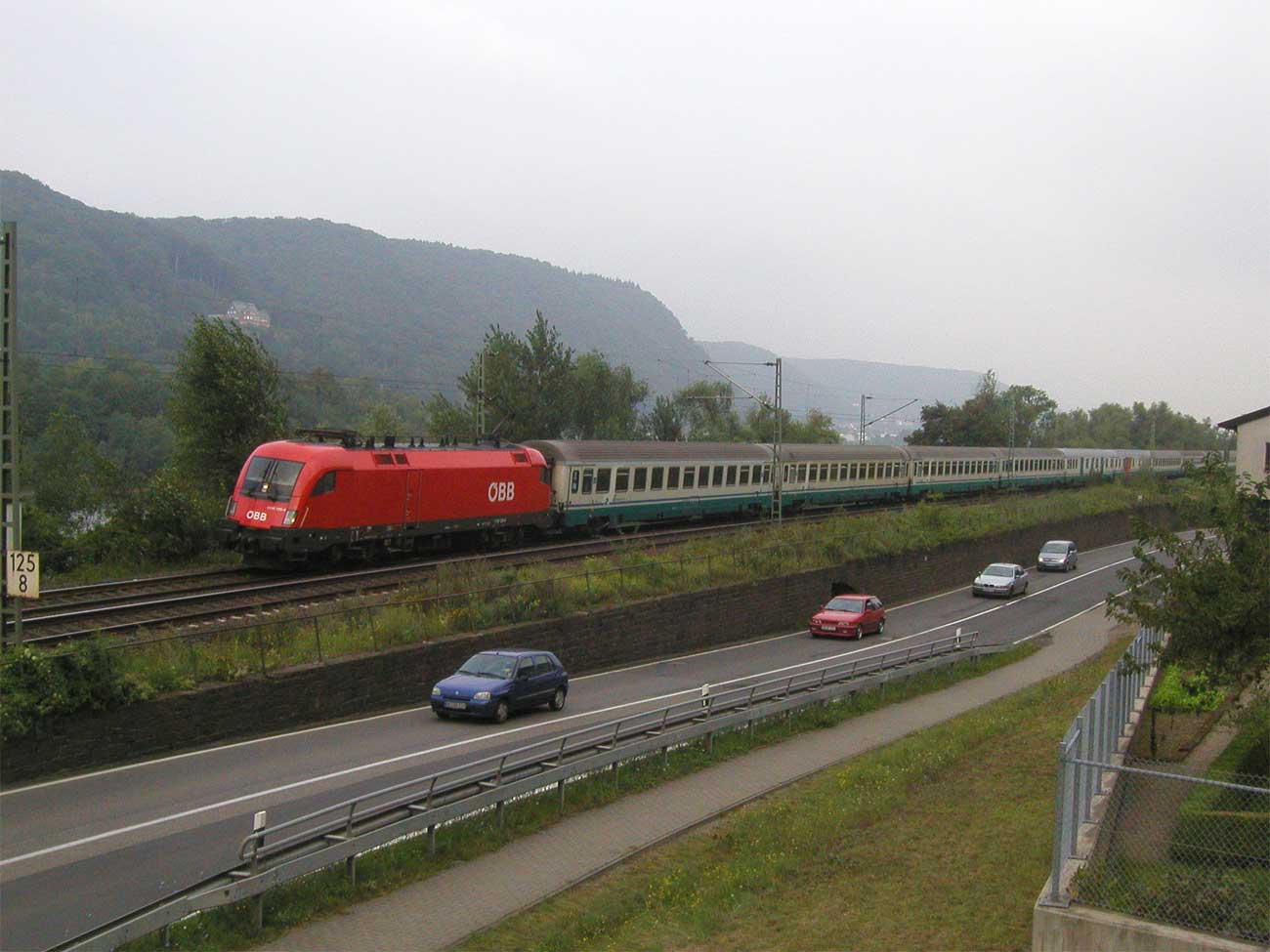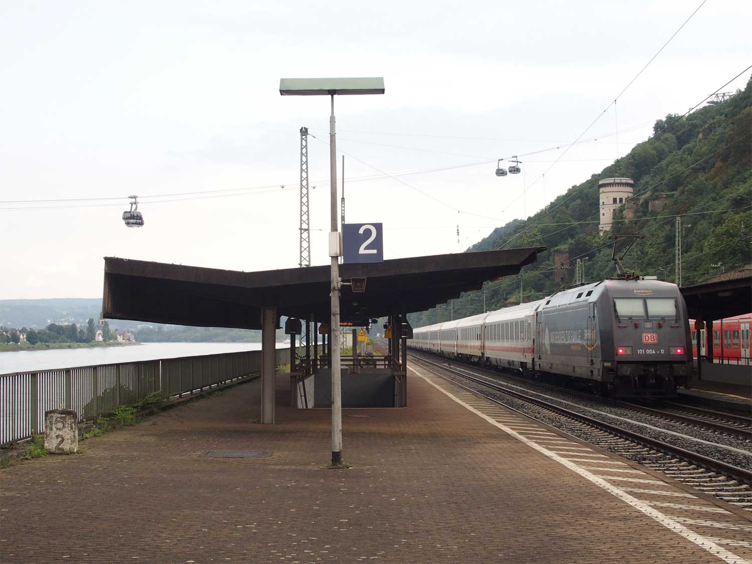 km 151,1 in Koblenz-Ehrenbreitstein - 101 125 mit umgeleitetem IC 2217 (nicht sichtbar schiebt 101 023)