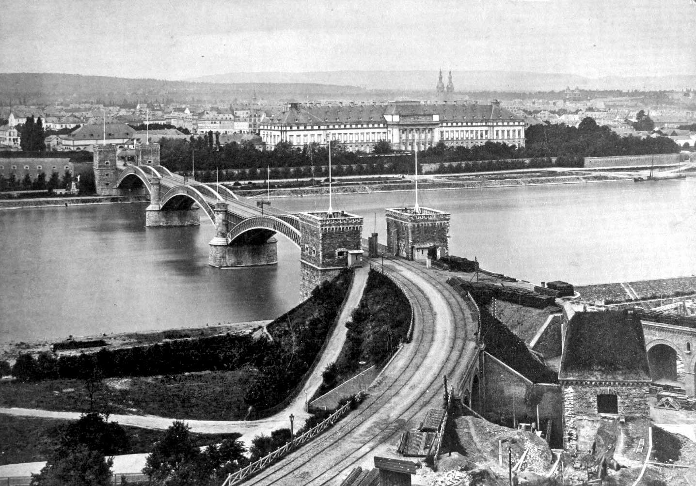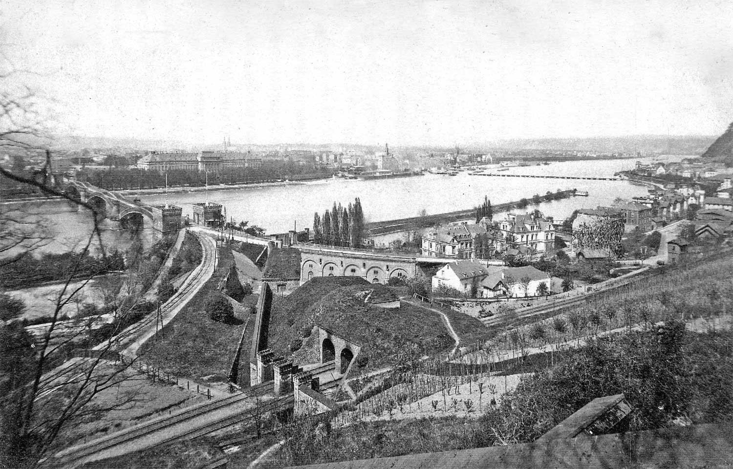 Coblenz Loehrtor stadtseitig mit Strecke zur Pfaffendorfer Bruecke - 1885-1889