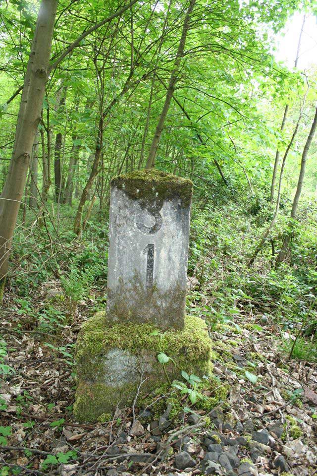 km 150,0 (Tafel und hinter dem Geländer versteckter Stein) zwischen Vallendar und Koblenz-Ehrenbreitstein - BEG V 65