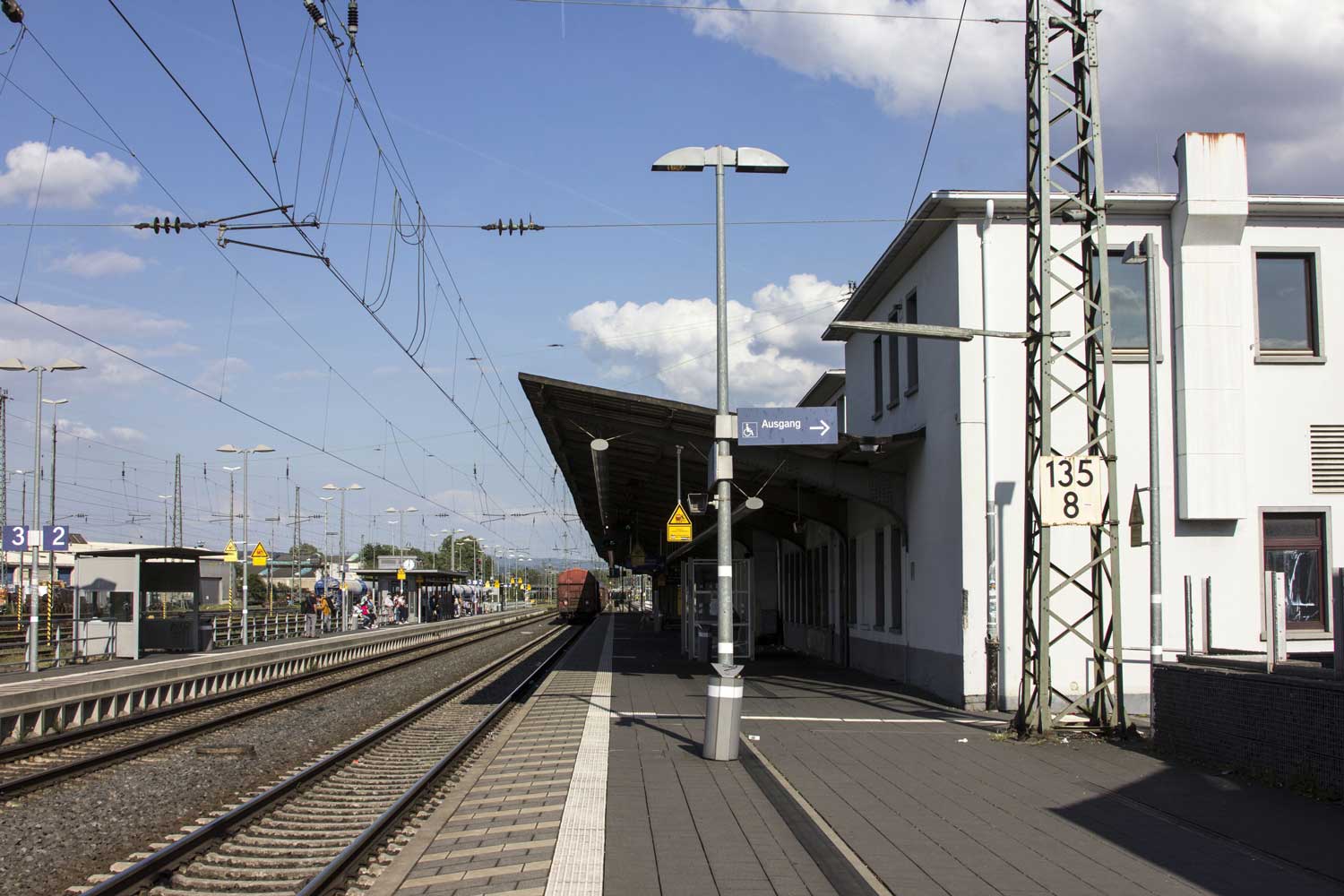 Troisdorf | 81,19 | km 20,06 der Strecke Köln-Deutz 0,0 - Troisdorf 20,06 - Au (Sieg) 64,76 - Betzdorf (Sieg) 82,97 - Haiger 118,83 - Dillenburg 125,00 - Wetzlar 153,40 - Gießen 166,00 |