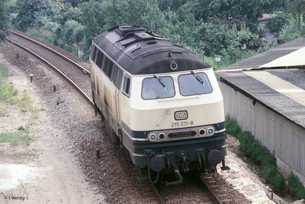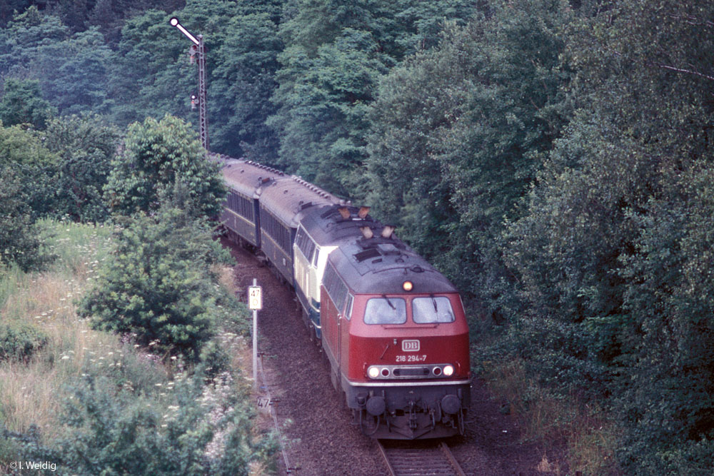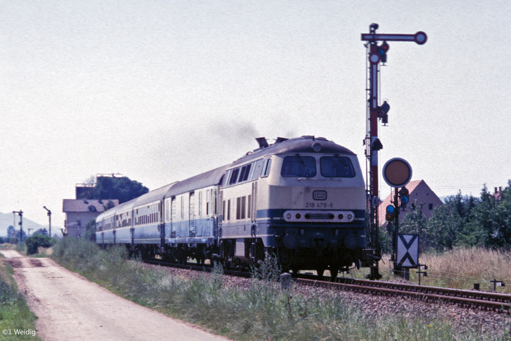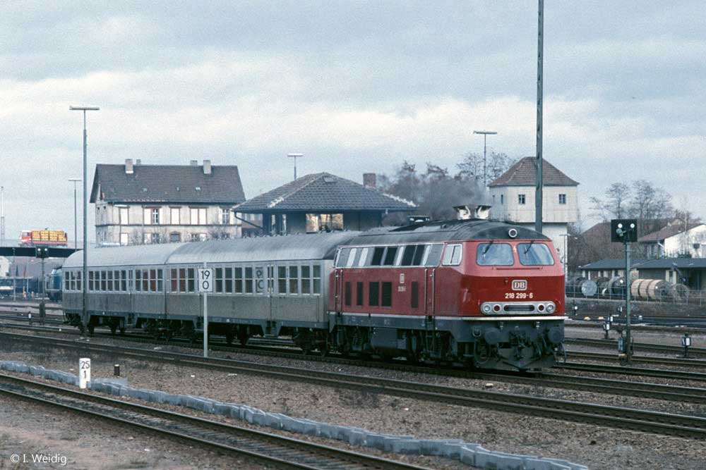 In Pirmasens Nord fährt 218 384 mit dem E 3264 (Kaiserslautern Hbf 13.42 - Pirmasens Hbf 14.28) aus.