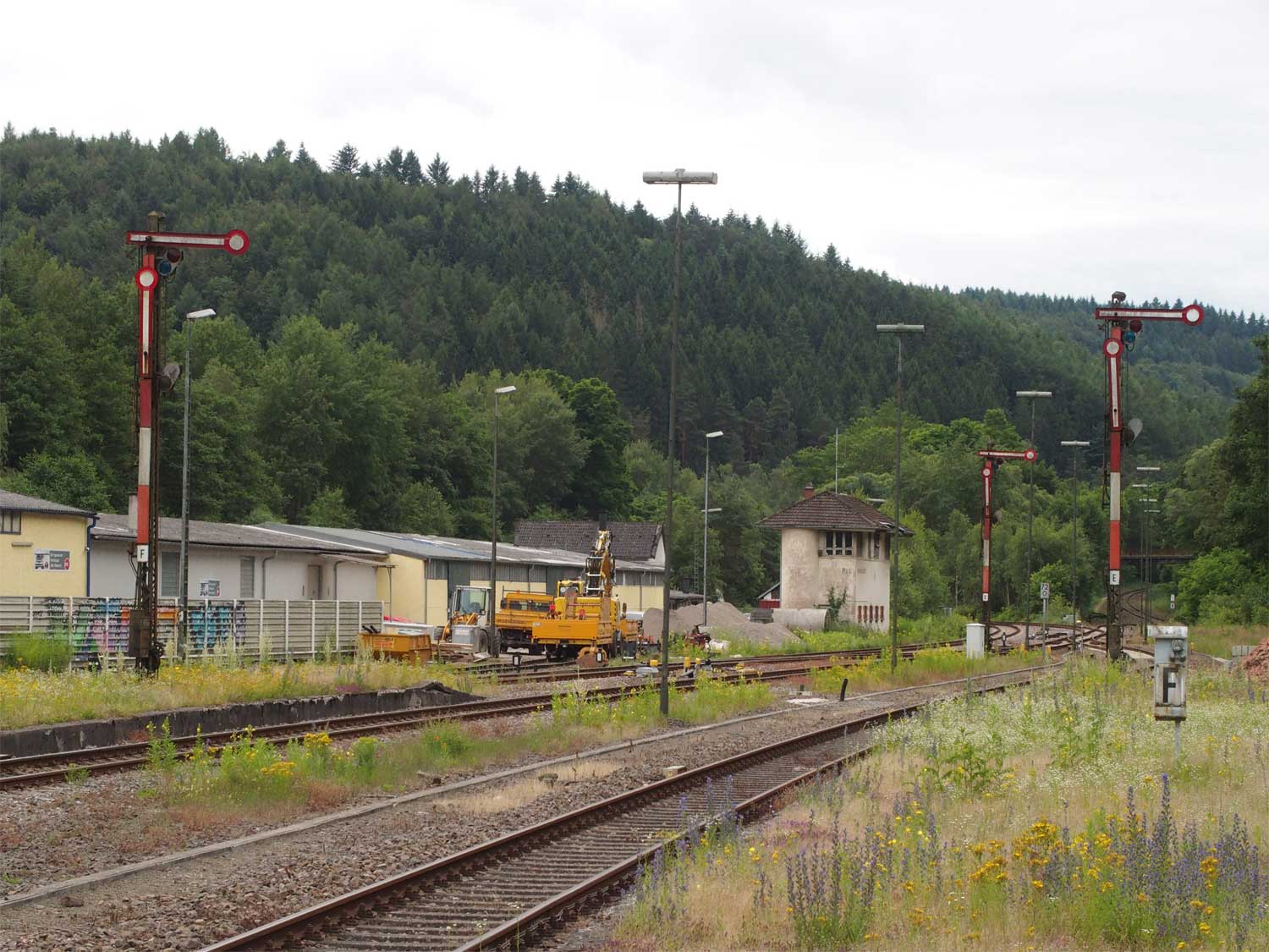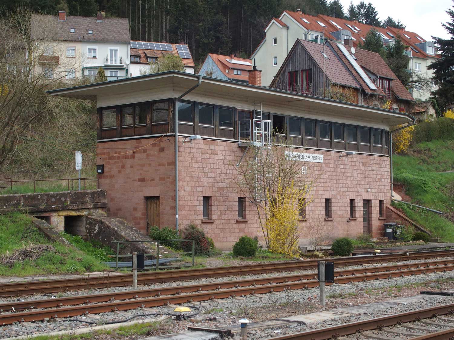 km 72,0 in Pirmasens Nord mit Stellwerk Pss - Blick Richtung Germersheim
