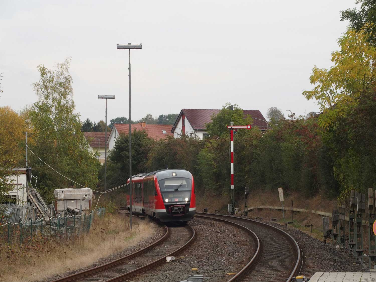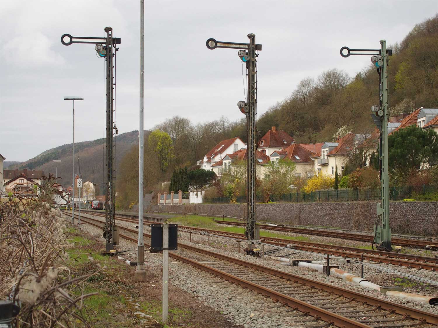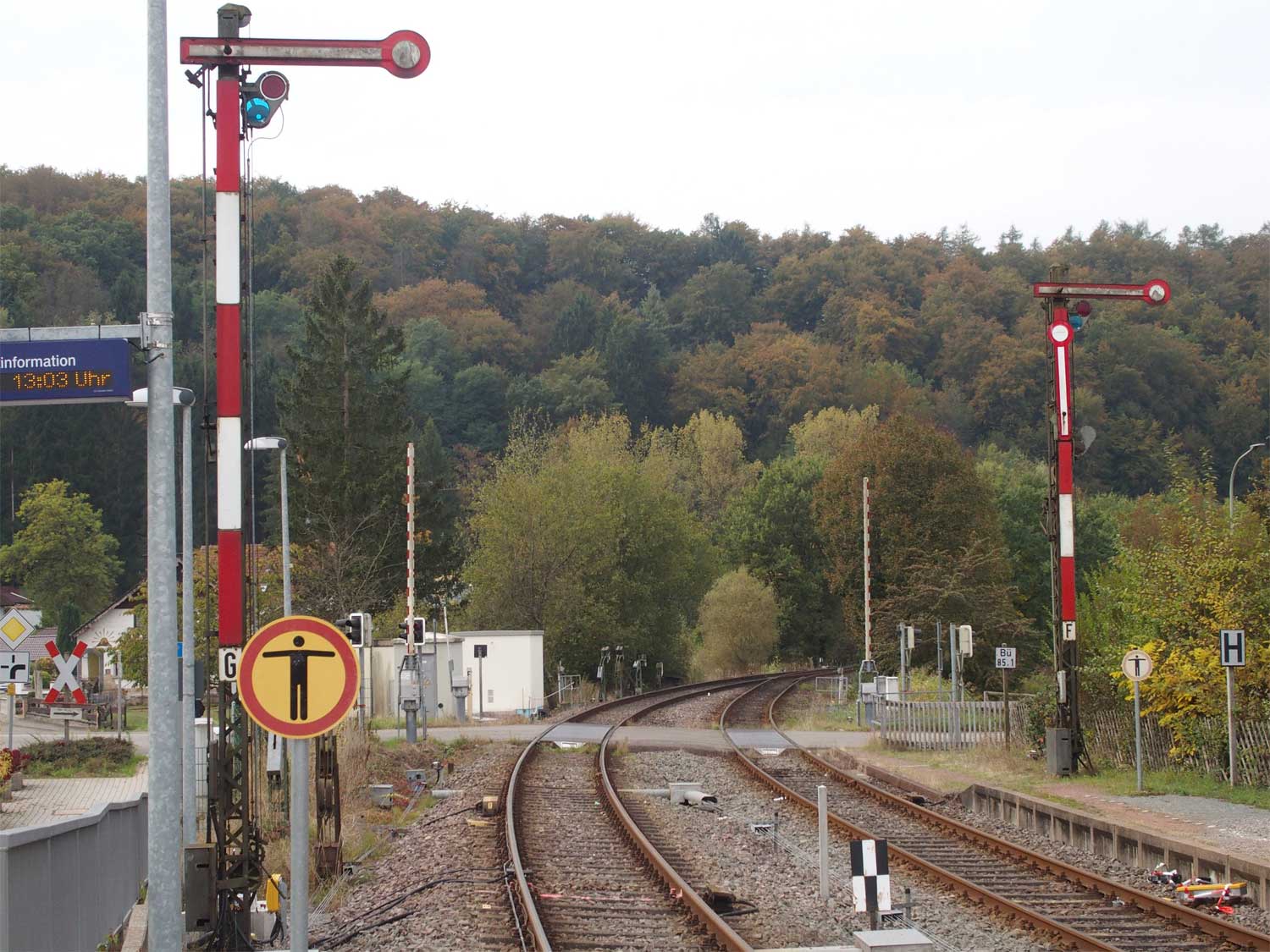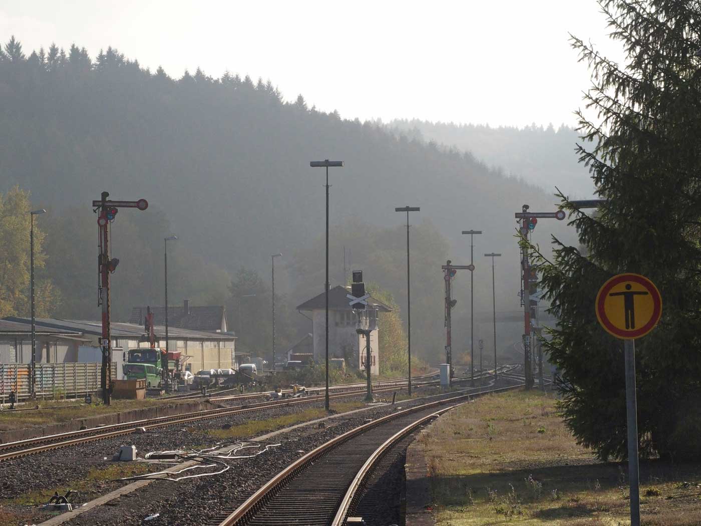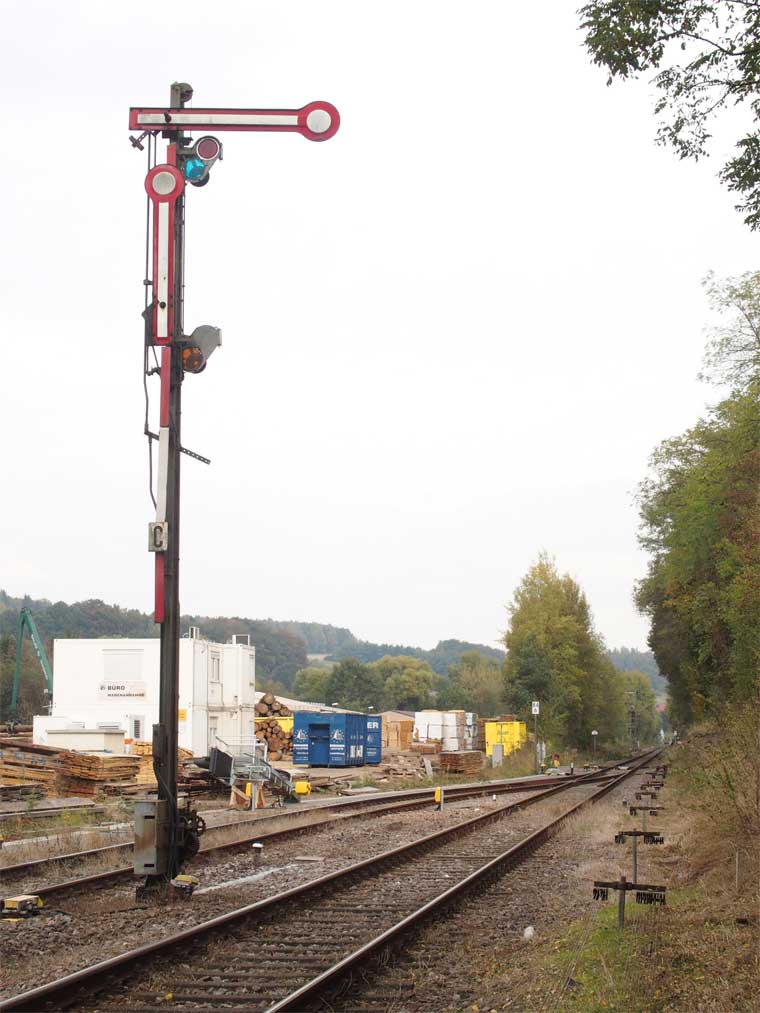Das rechte Gleis gehört zur Strecke Homburg (Saar) Hbf 0,0 - Bierbach 9,11 - Reinheim (Saar) 26,50 - Grenze Deutschland/Frankreich 27,315 - Sarreguemines (Saargemünd) 39,0