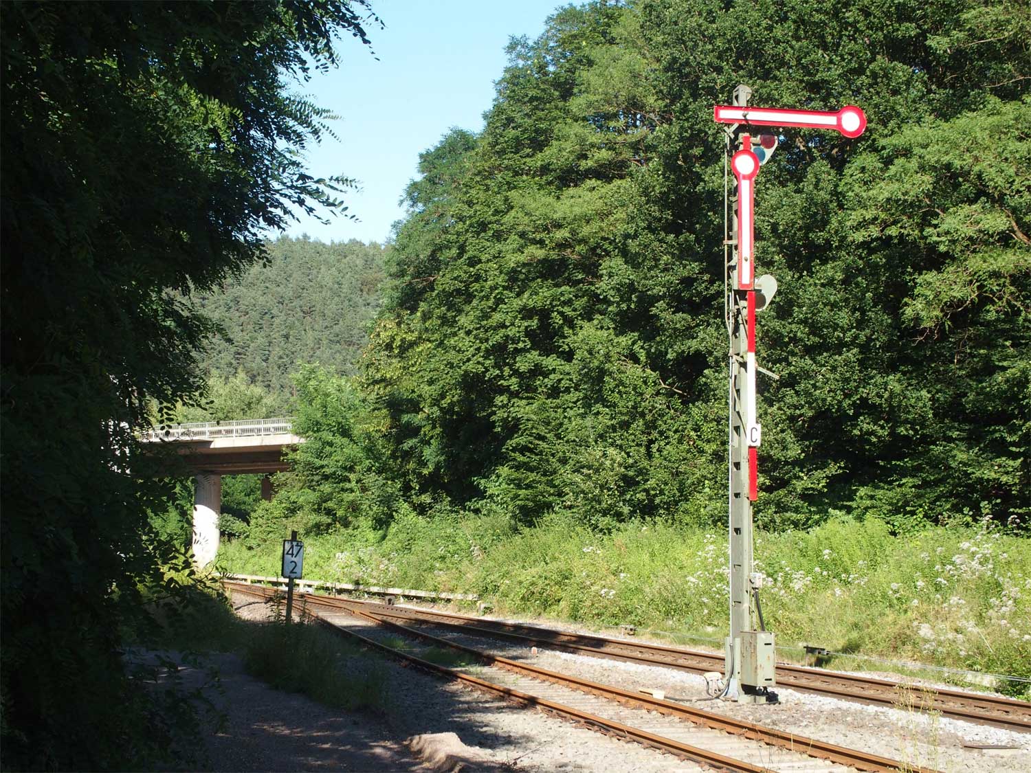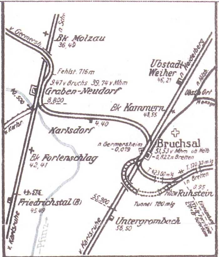 km -2,06 des Güterzuggleises Bruchsal -2,06 - Abzw Ruhstein 0,95 | ||