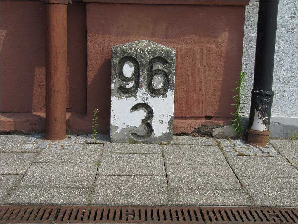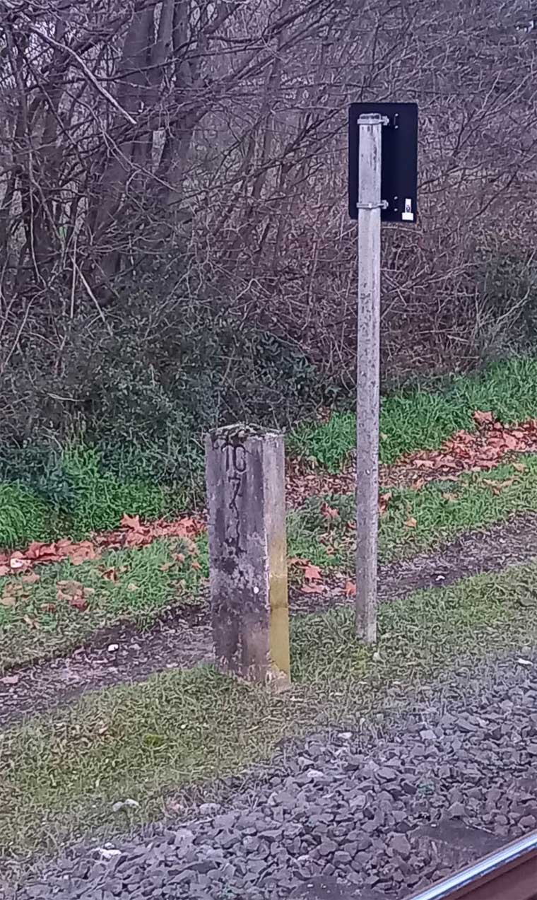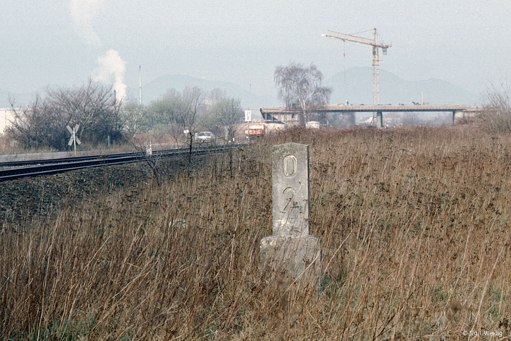 km 72,6 (Tafel und Stein) in Pirmasens Nord - Blick Richtung Germersheim