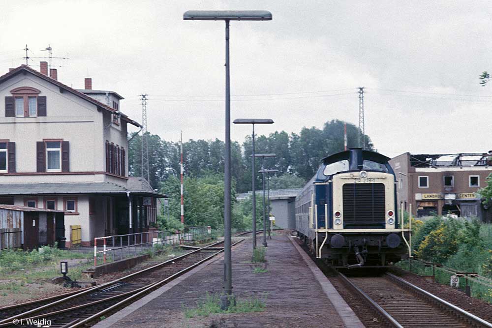 km 22,50 der Strecke Schifferstadt 0,015 - Wörth (Pfalz) 49,87 - Berg (Pfalz) 59,48 - Grenze Deutschland/Frankreich km 60,959 [= km 56,837 - Lauterbourg (Els) 55,493 - Röschwoog 36,496 - Strasbourg Ville 0,0] | ||
