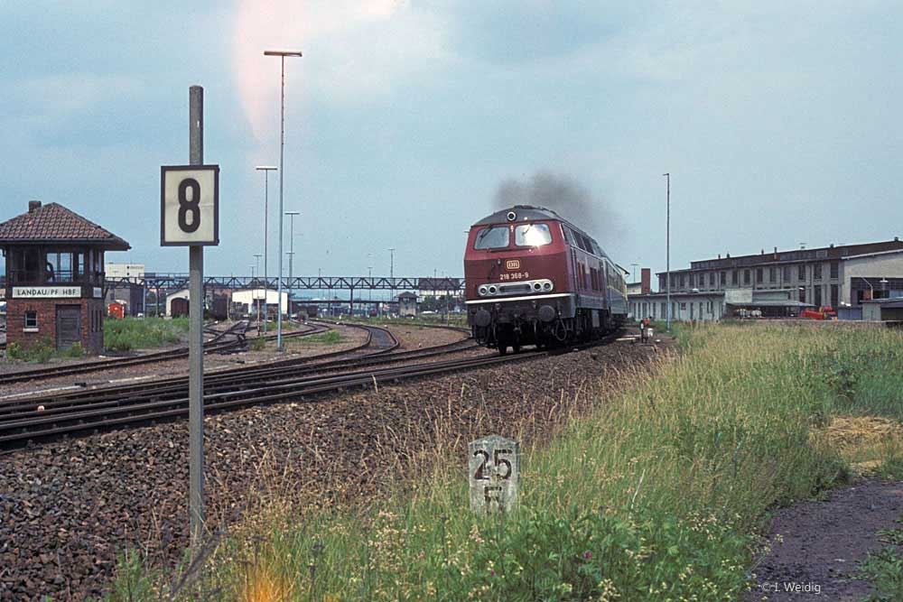 Landau (Pfalz) Hbf | 24,51 | km 18,43 der Strecke Neustadt (Weinstr) Hbf 0,02 - Landau (Pfalz) Hbf 18,43 - Kapsweyer 41,17 - Grenze Deutschland/Frankreich 44,618 = (km 60,028 - Wissembourg 57,67 - Vendenheim 0,0) |