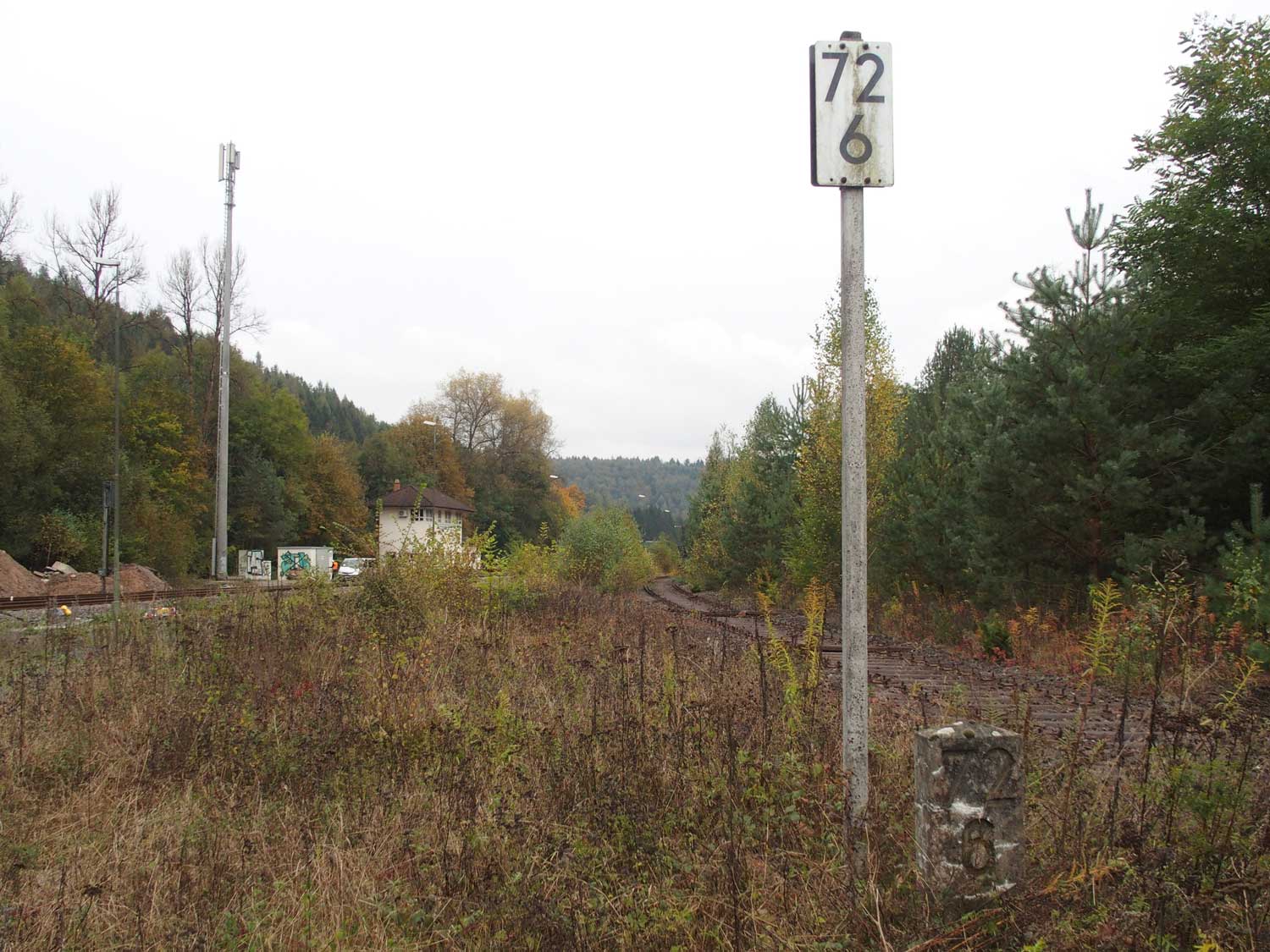 km 72,2 (Stein und Tafel) in Pirmasens Nord - Blick Richtung Rohrbach