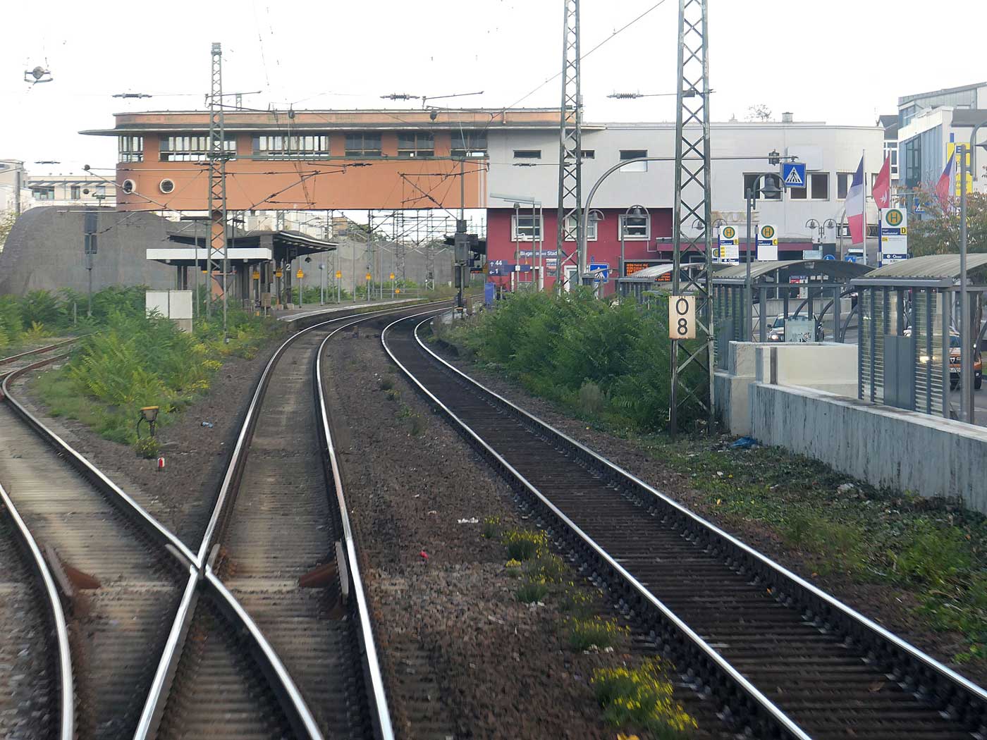 km 0,4; km 0,6 und km 1,0 gehören zur Strecke Mainz Hbf 0,0 - Wiesbaden Hbf 9,53 (rechtes Gleis)