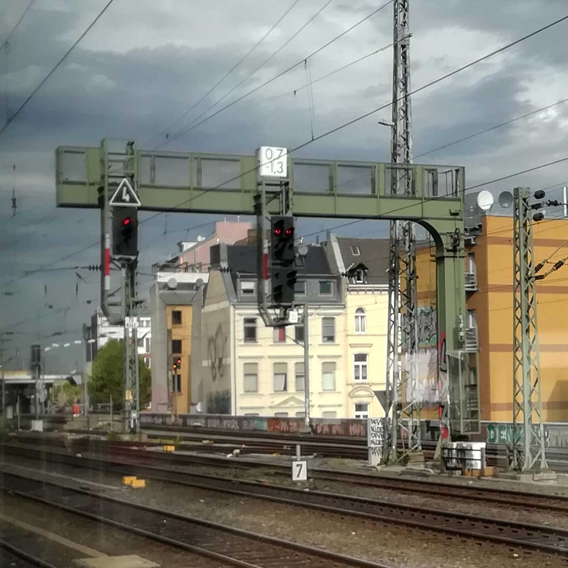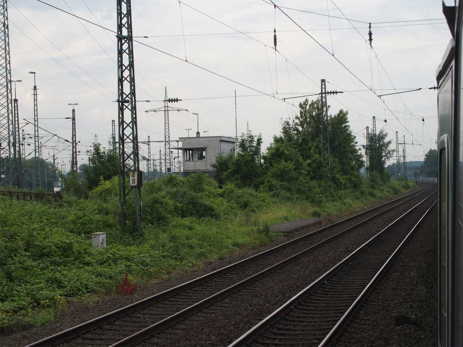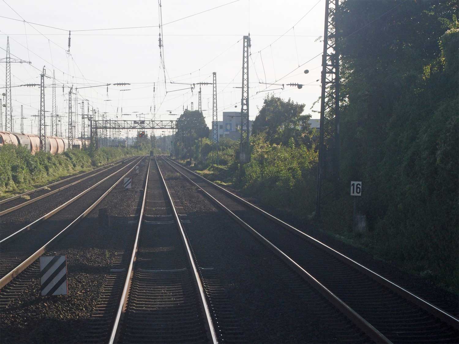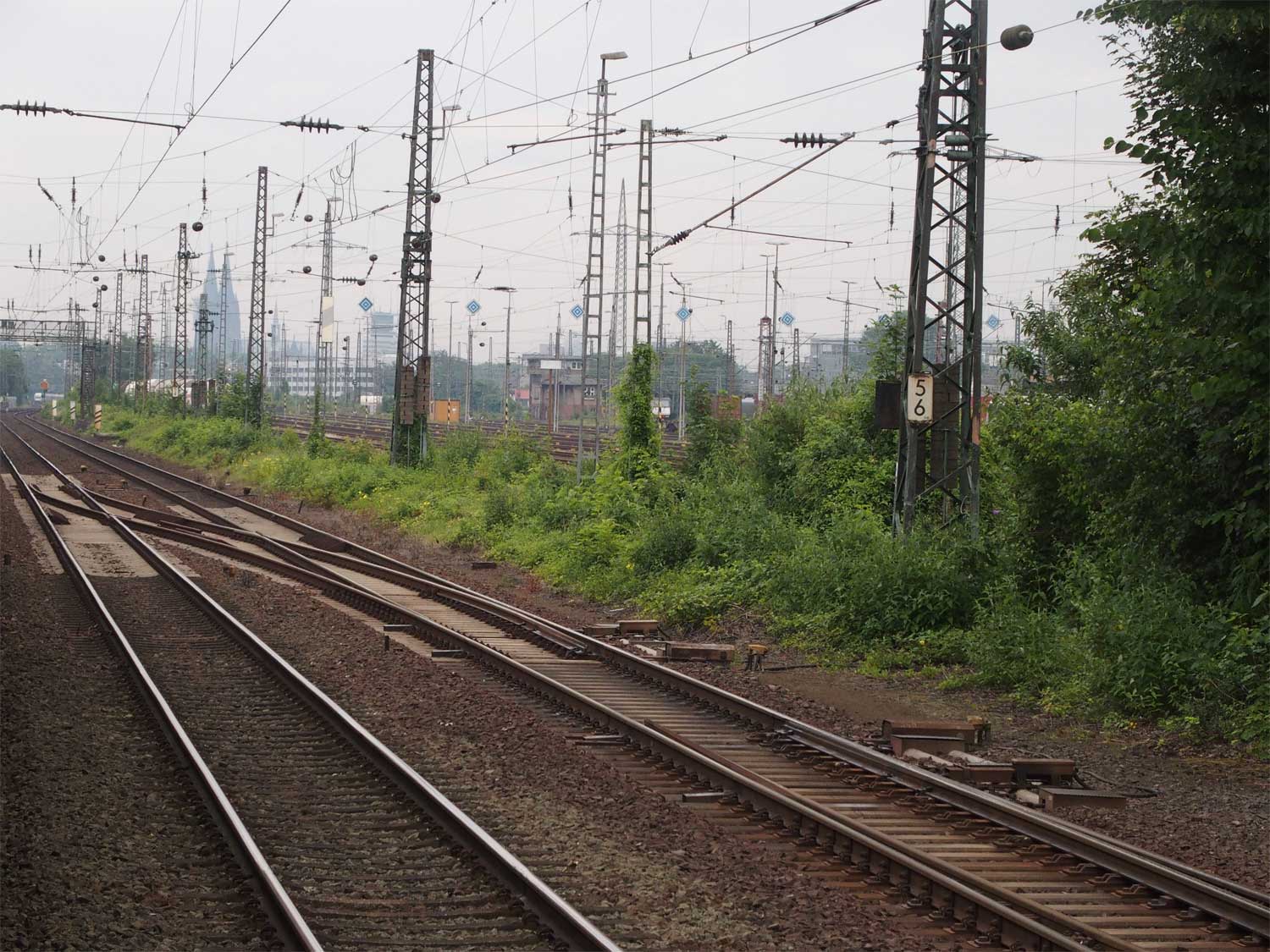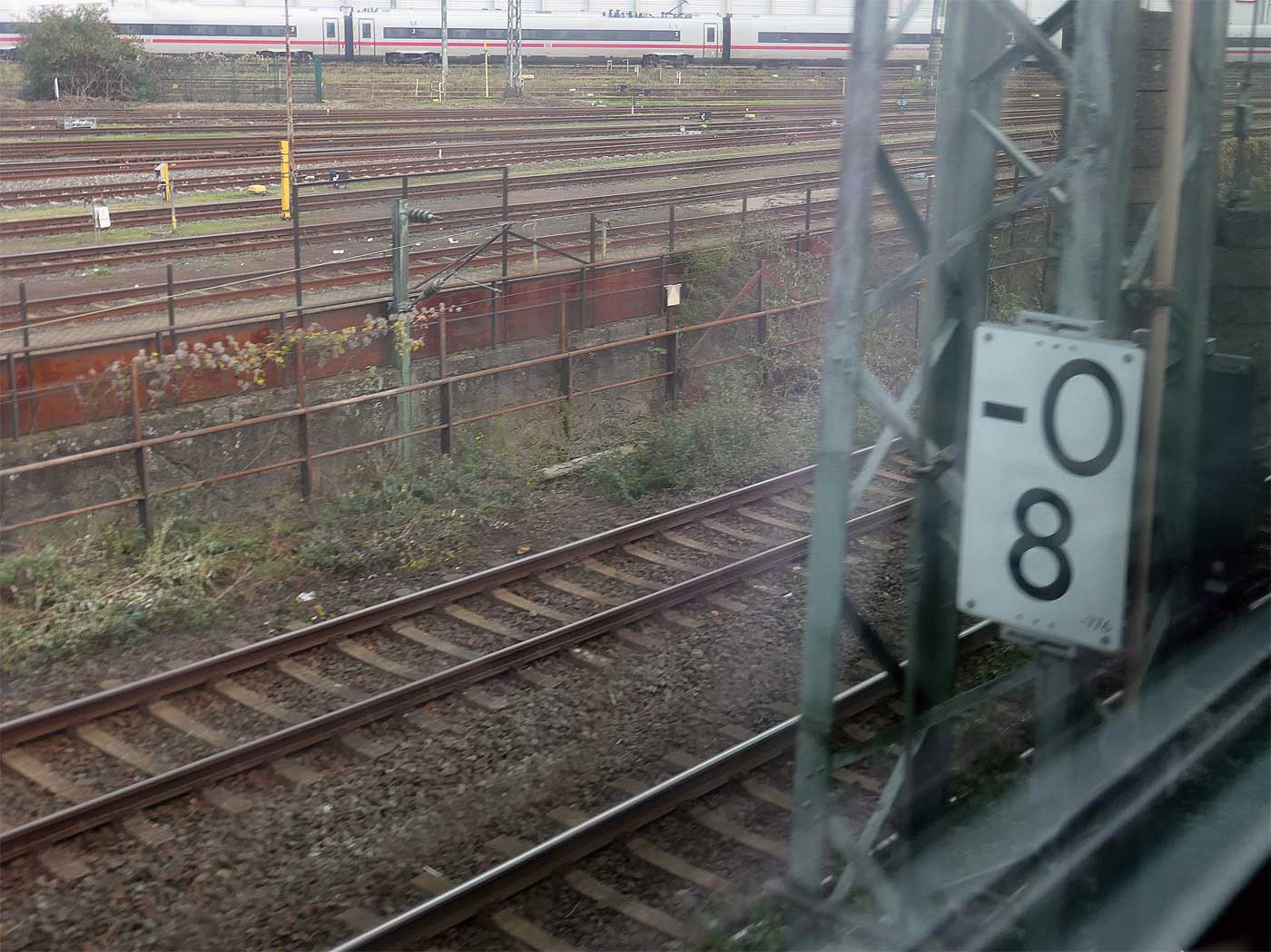 km 0,0 der Strecke Köln Hbf 0,0 - Neuß 34,40 - Krefeld 53,56 - Kleve 118,37 - Kranenburg 129,26 - Grenze Deutschland/Niederlande 131,10 - (Nijmegen)