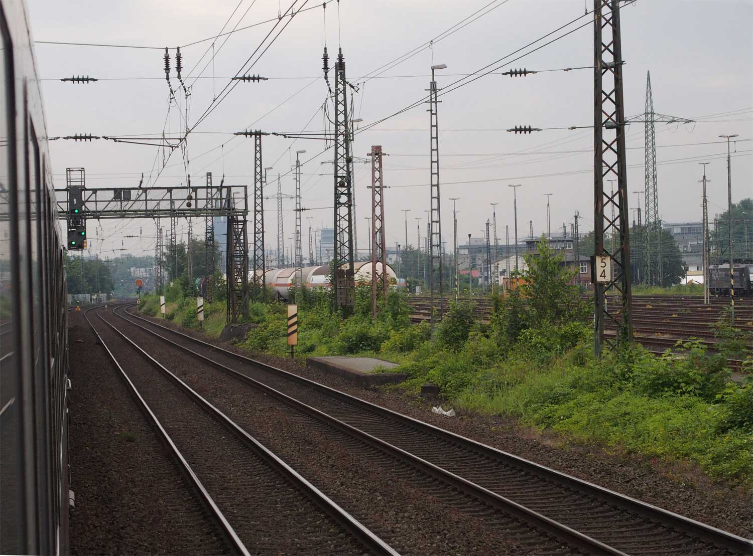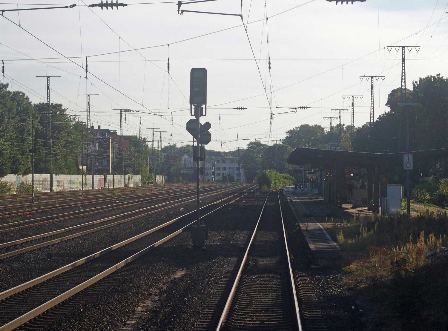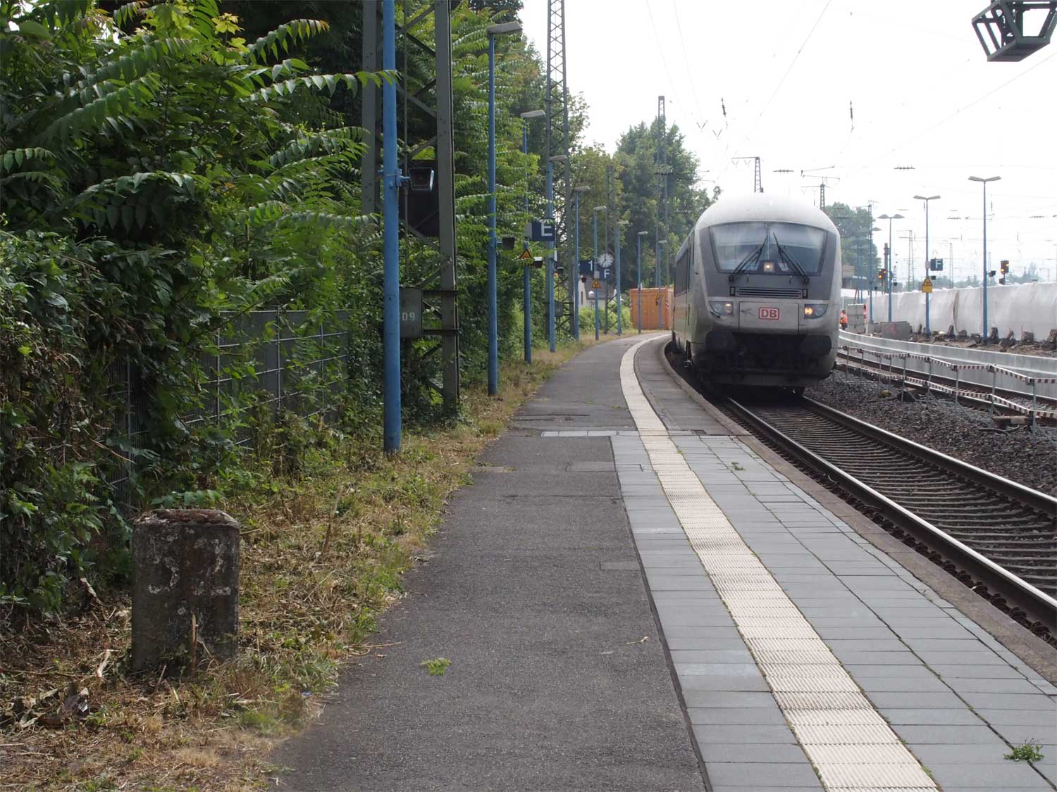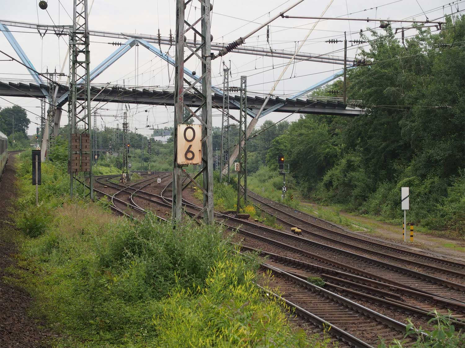 km 0,0 der Strecke Köln Hbf 0,0 - Neuß 34,40 - Krefeld 53,56 - Kleve 118,37 - Kranenburg 129,26 - Grenze Deutschland/Niederlande 131,10 - (Nijmegen)
