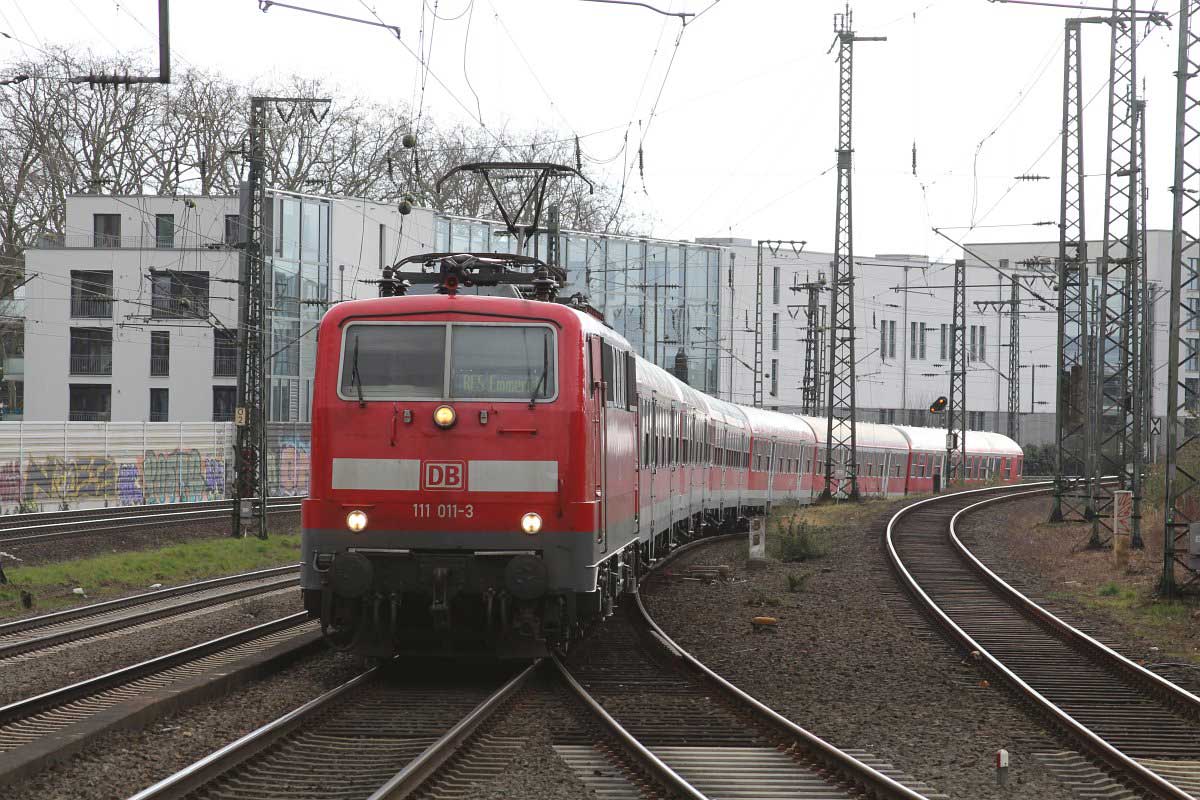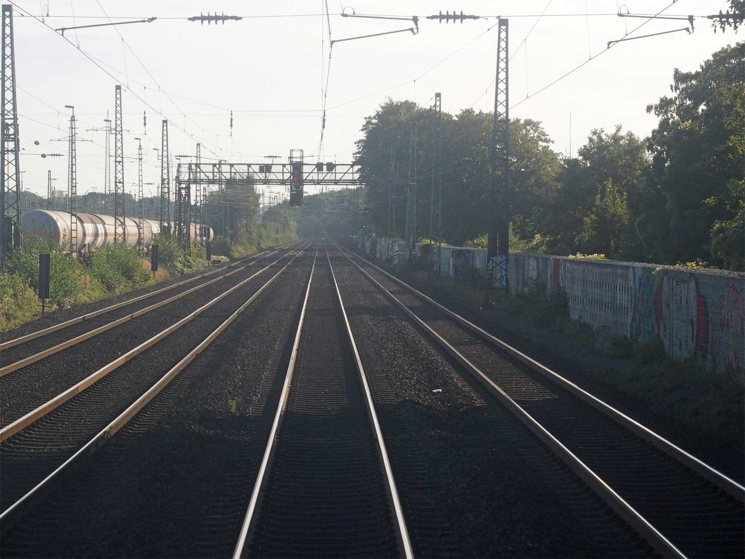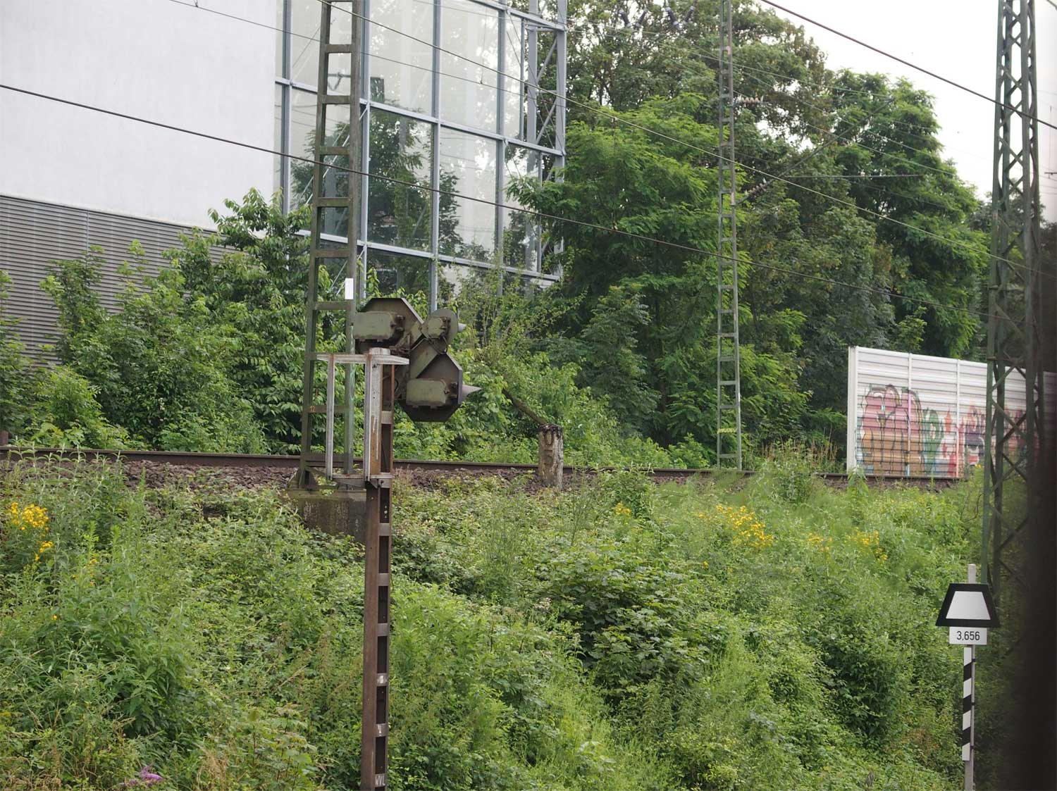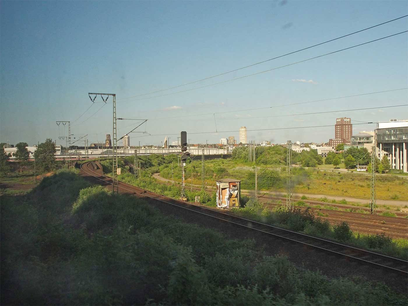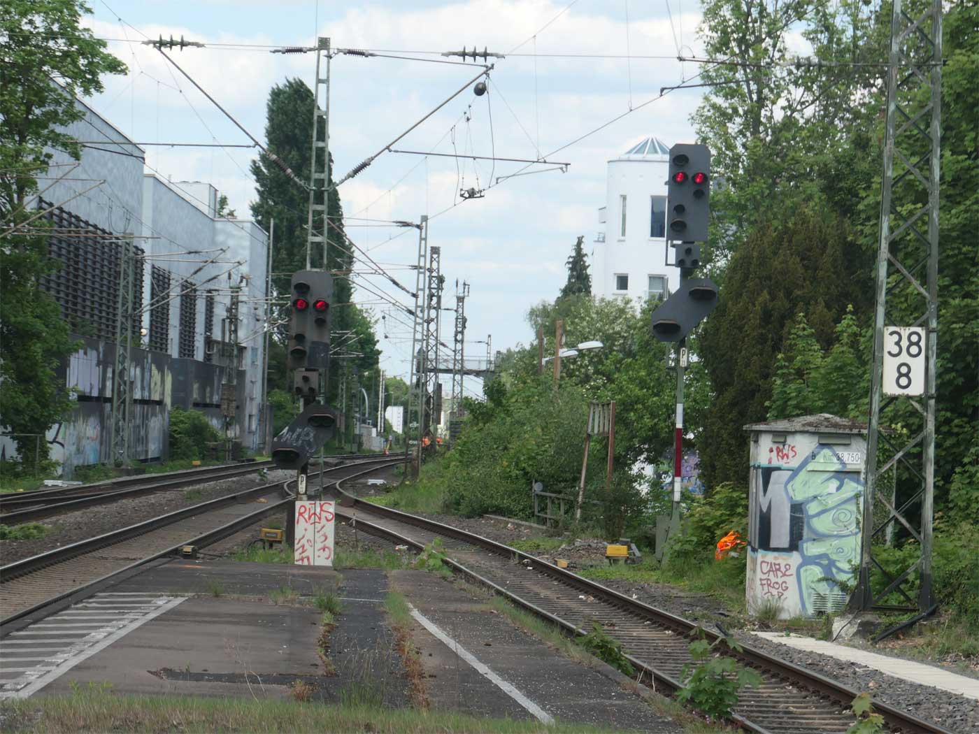 km 0,0 der Strecke Köln Hbf 0,0 - Neuß 34,40 - Krefeld 53,56 - Kleve 118,37 - Kranenburg 129,26 - Grenze Deutschland/Niederlande 131,10 - (Nijmegen)