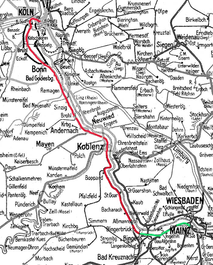 Köln Hbf 0,0 - Koblenz Hbf 91,20 - Bingerbrück 151,98 - Landesgrenze Preußen/Hessen (Mitte Nahebrücke) km 152,41 =