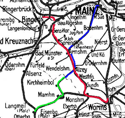 Langmeil (Pfalz) - Marnheim - Landesgrenze Pfalz/Hessen - Alzey - Mainz Hbf |