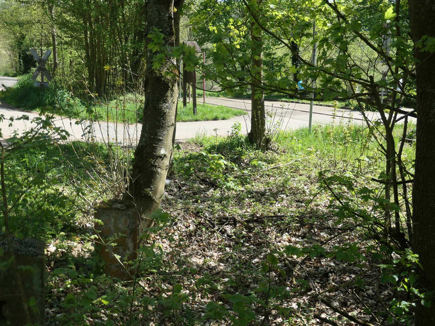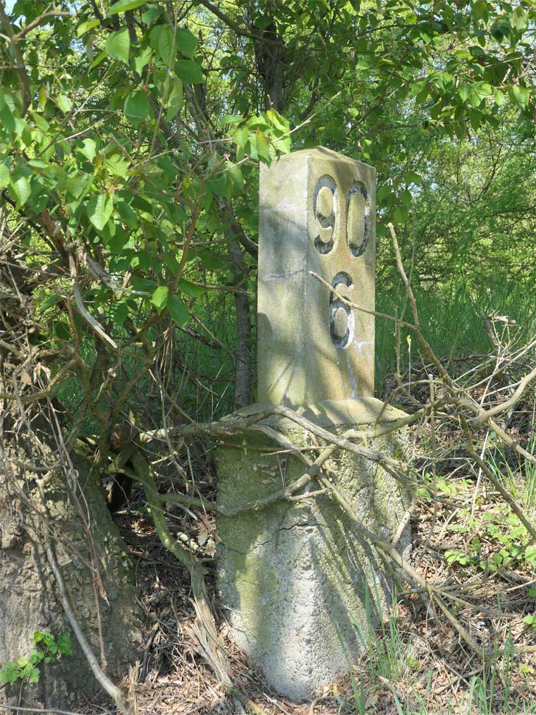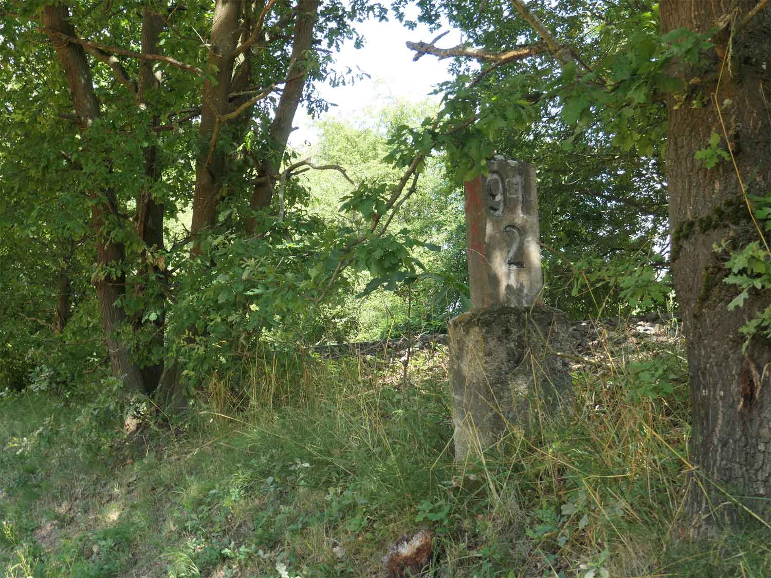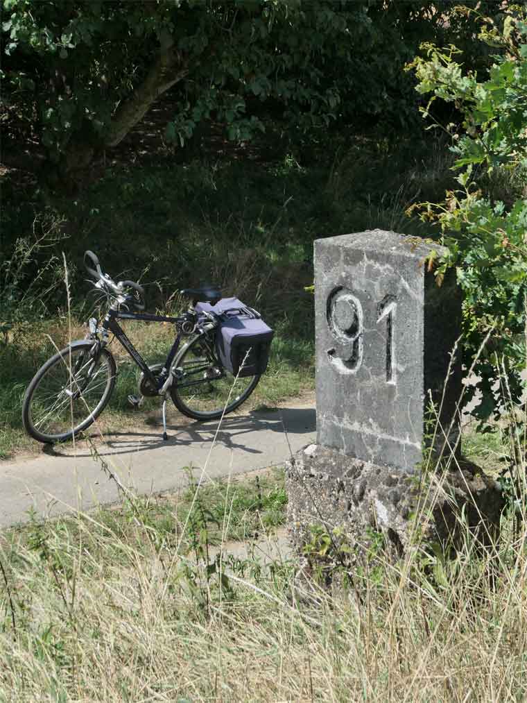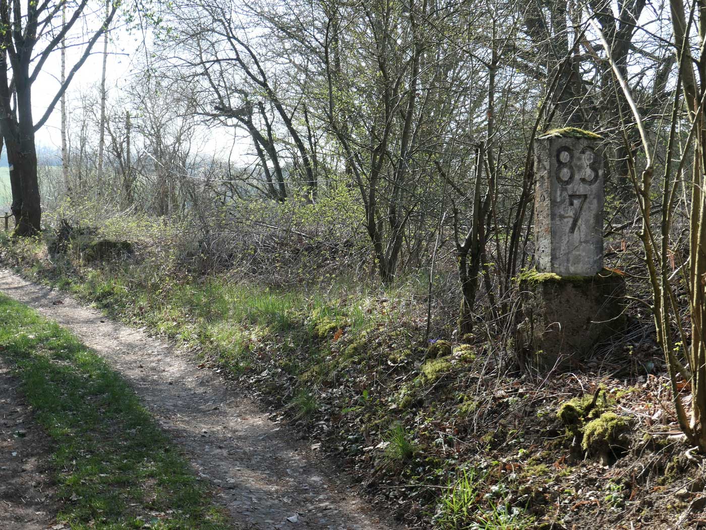 Links im Bild sind auch zwei Kilometersteine zu erkennen.