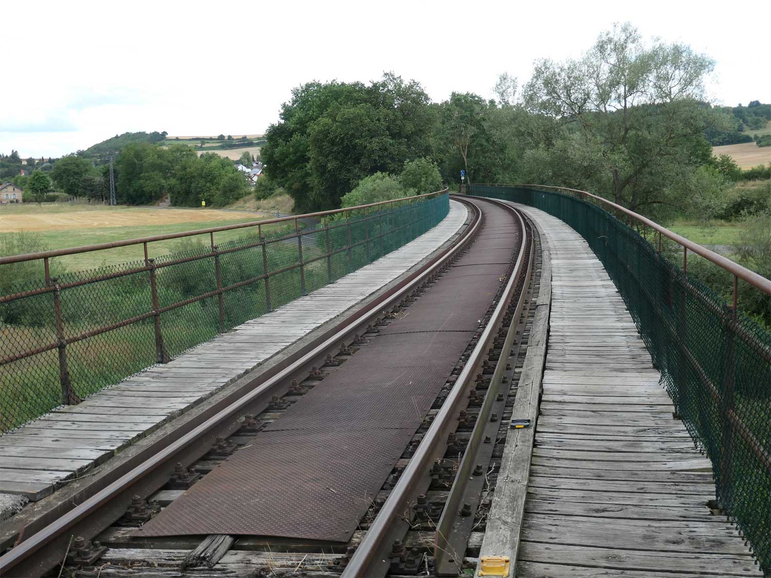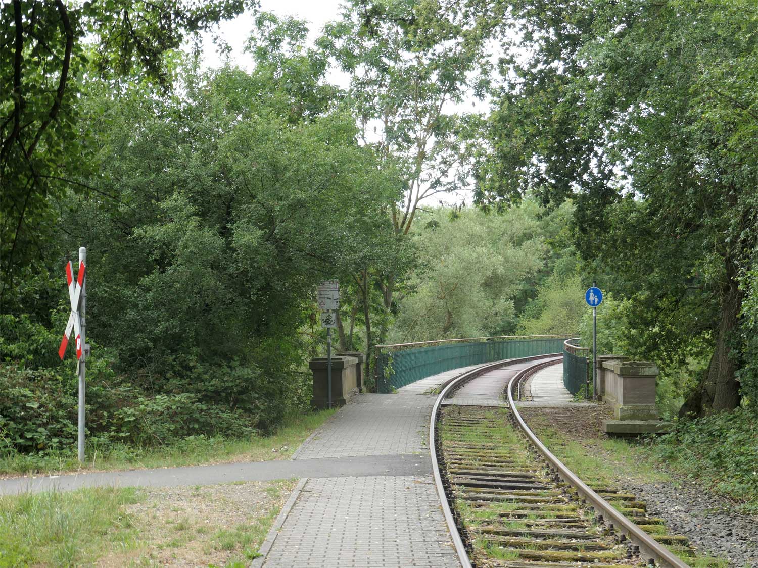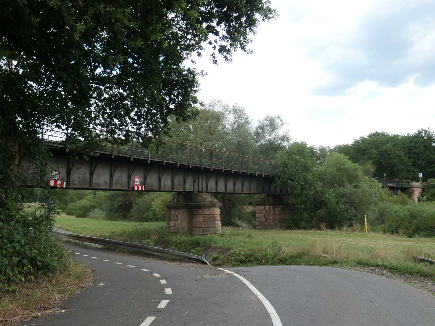 Hinter der Brücke verlief nach rechts die Strecke nach Bad Münster am Stein