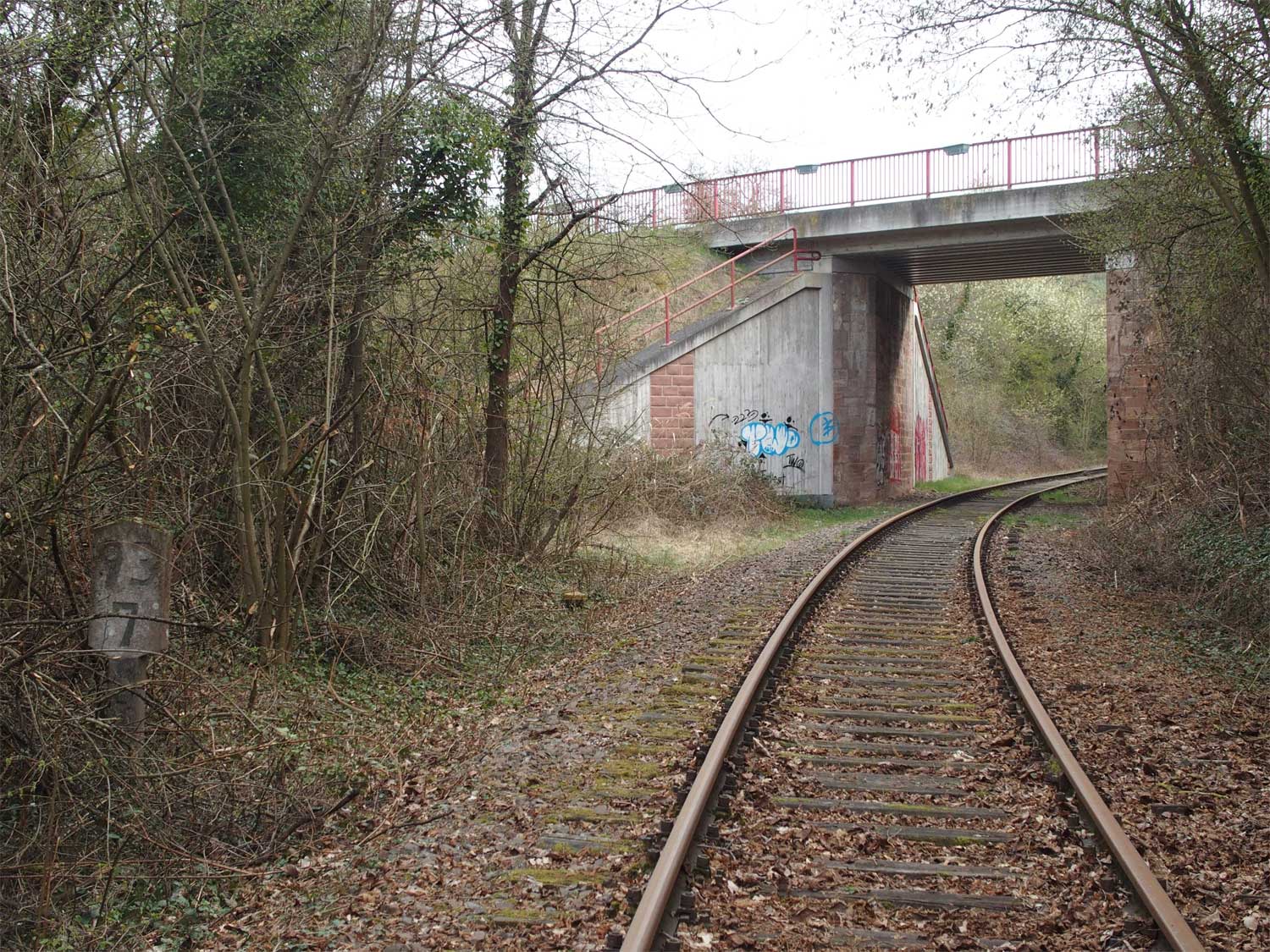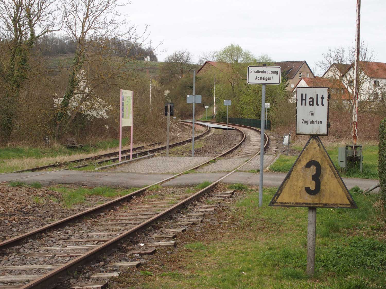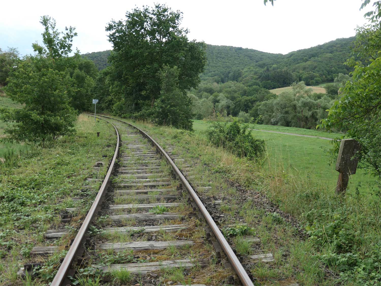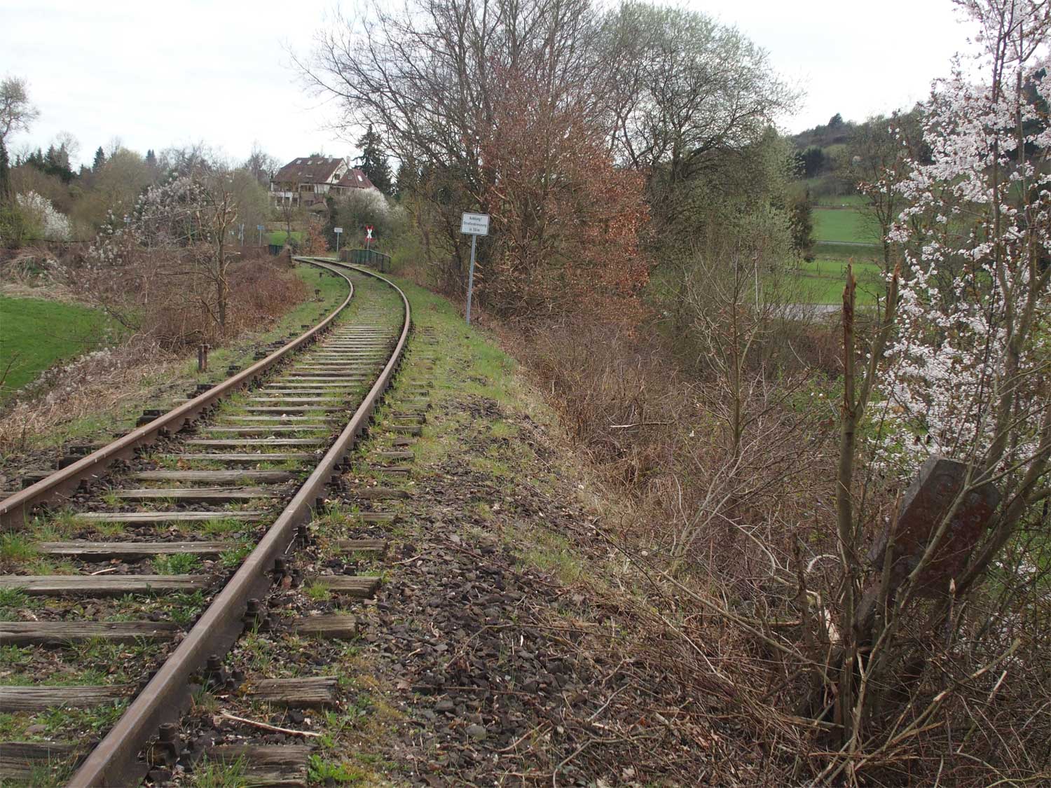 Links ab verlief die ehemalige Strecke nach Bad Münster am Stein