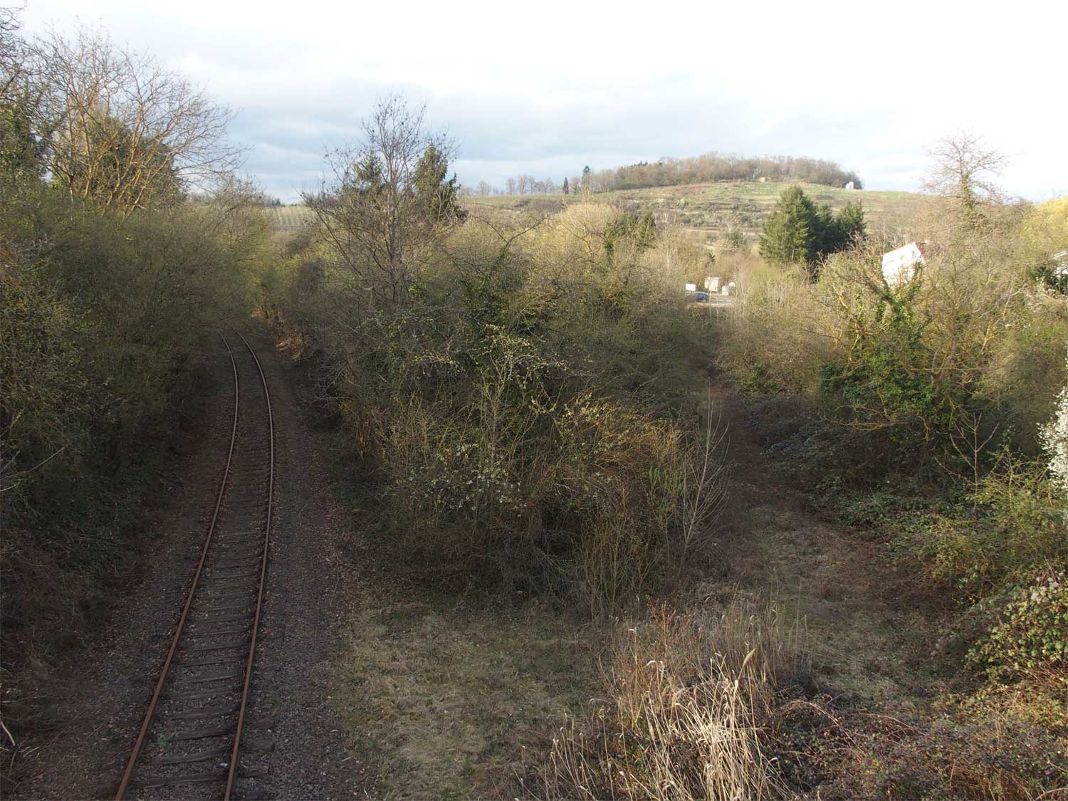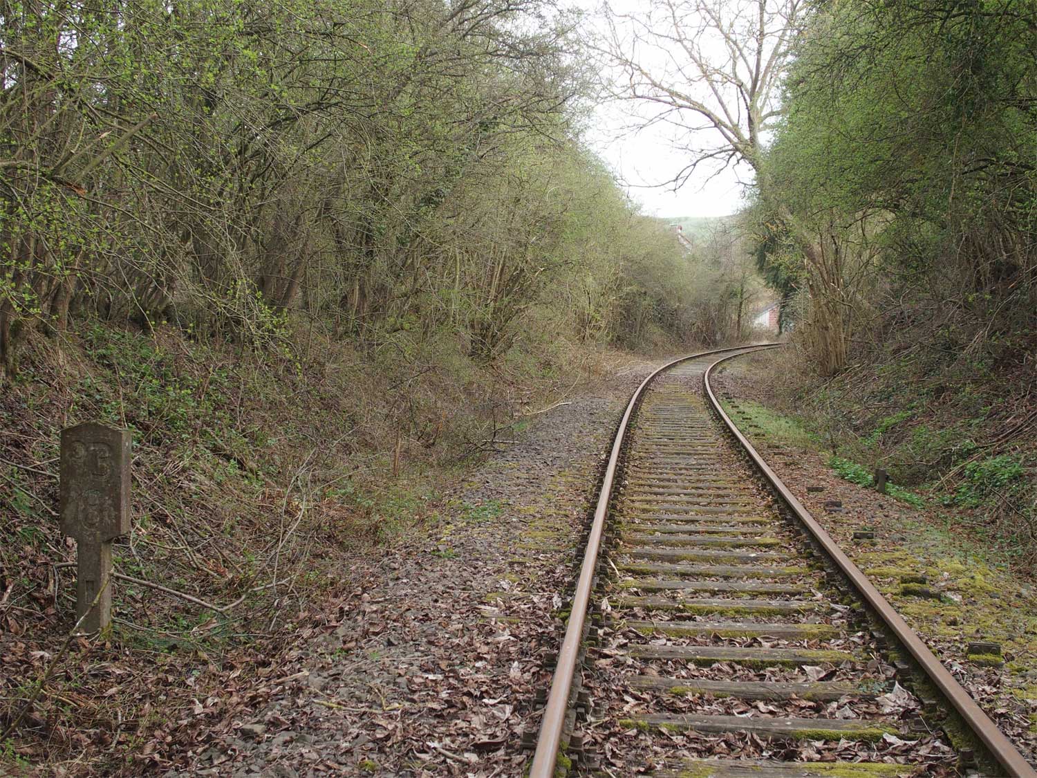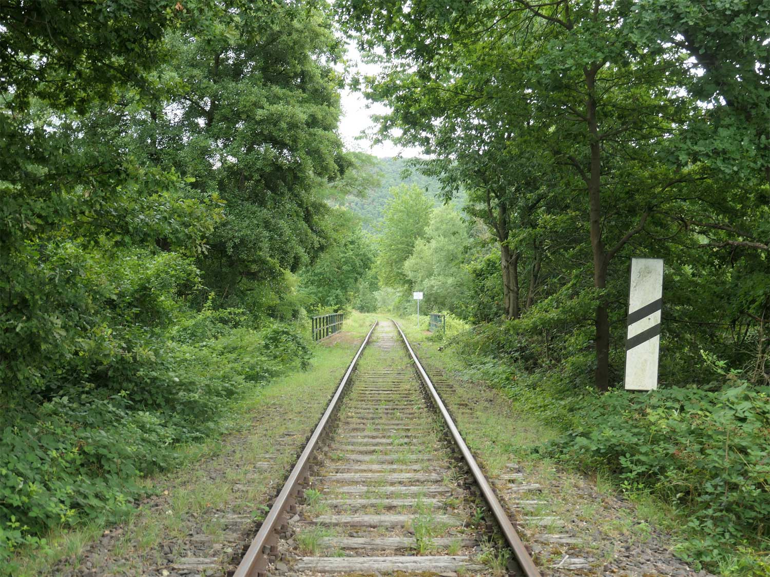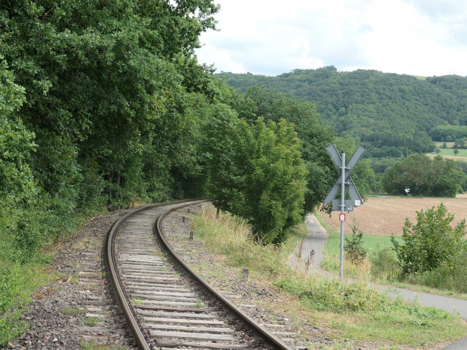 Links ab verlief die ehemalige Strecke nach Bad Münster am Stein