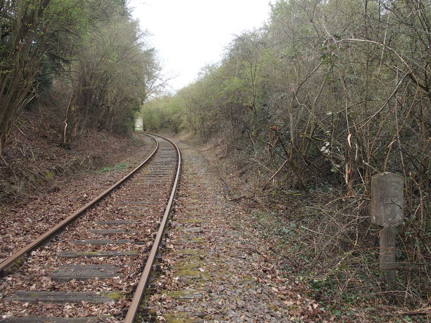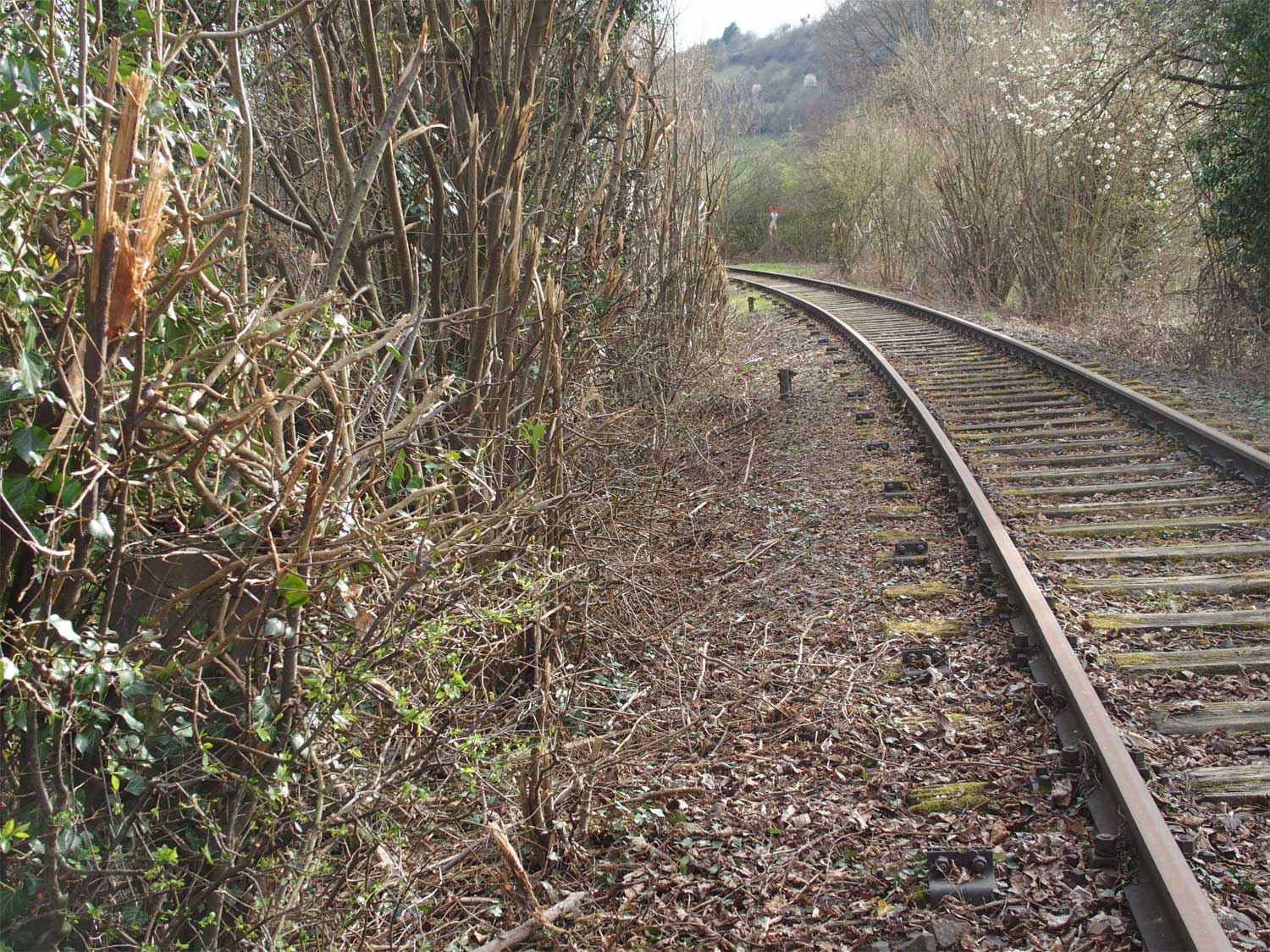 Rechts verlief die ehemalige Strecke nach Bad Münster am Stein