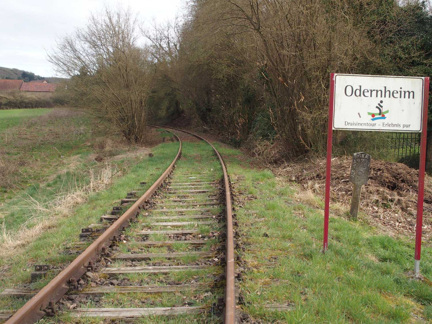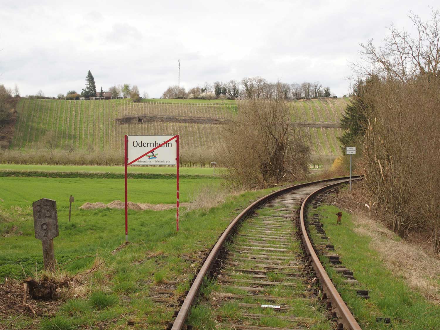 Odernheim (Glan) | 0,0 | km 93,28 der Strecke Homburg (Saar) 0,0 - Altenglan 31,925 - km-Sprung km 33,05 = km 56,89 - Bad Münster am Stein 109,72 |