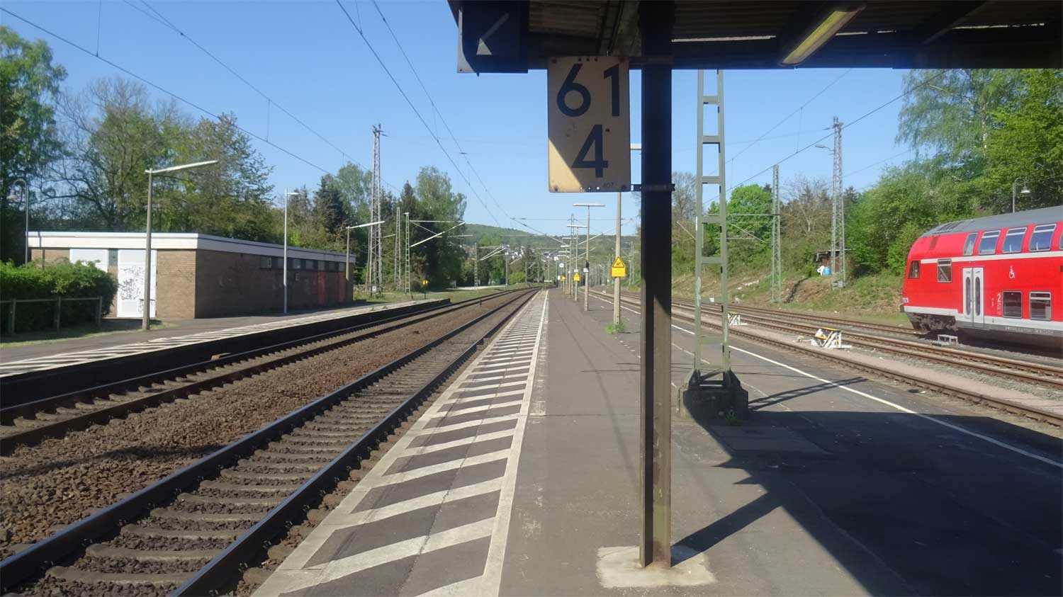 km 0,0 der Strecke Frankfurt (Main) Hbf 0,0 - Wiesbaden Ost 37,80 - Wiesbaden-Biebrich 39,47 - Niederlahnstein 123,82 - km 125,70 = km 154,68 (auch Angabe: 125,72 = 154,66) von Mülheim (Ruhr)- Speldorf 0,18 (siehe auch Tabelle 3, Ziffer 2) | ||