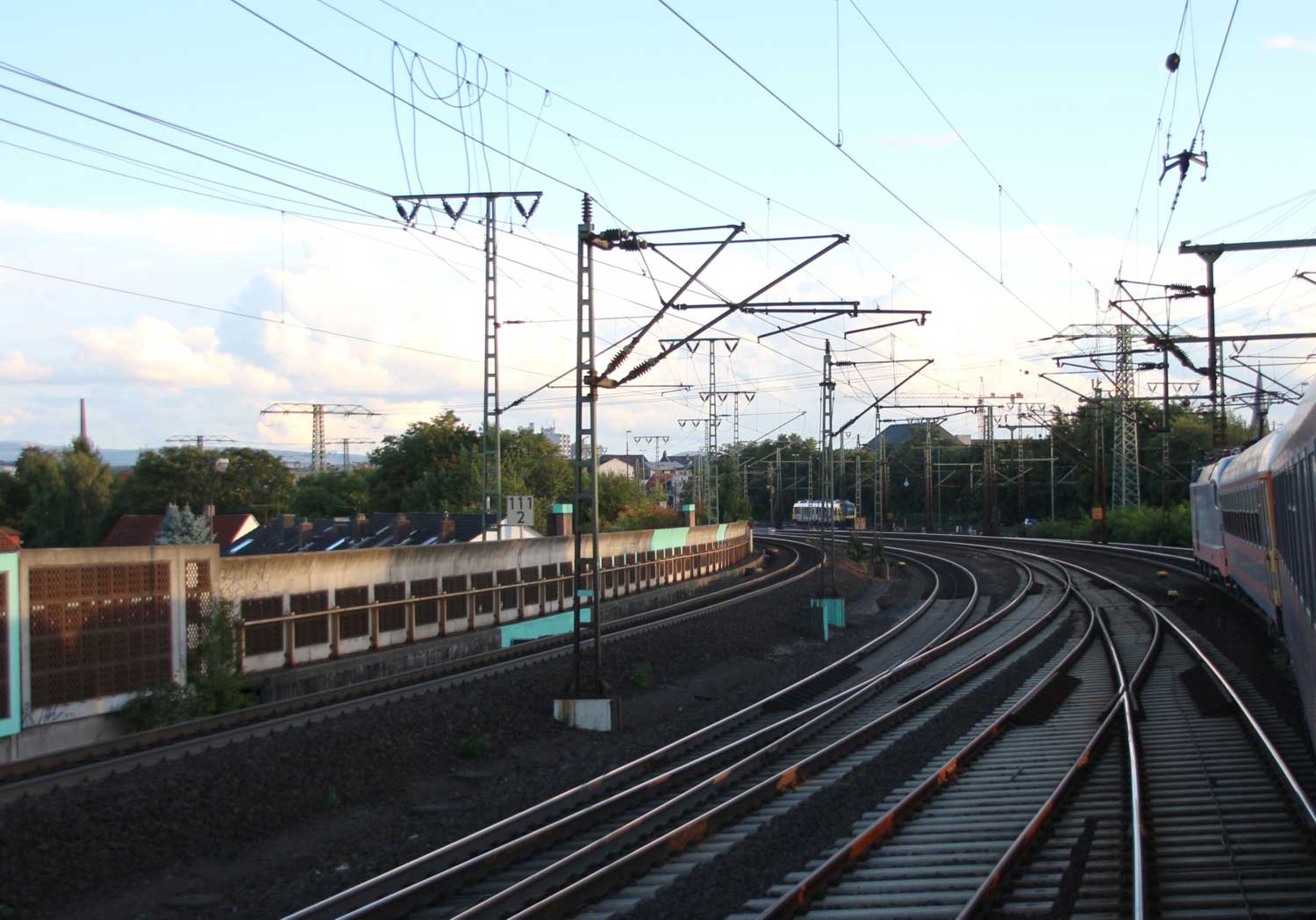 km 37,00 der Strecke (Mainz Hbf 0,0) - Frankfurt (M) Sportfeld 31,37 - Frankfurt (M) Süd 37,00 | ||