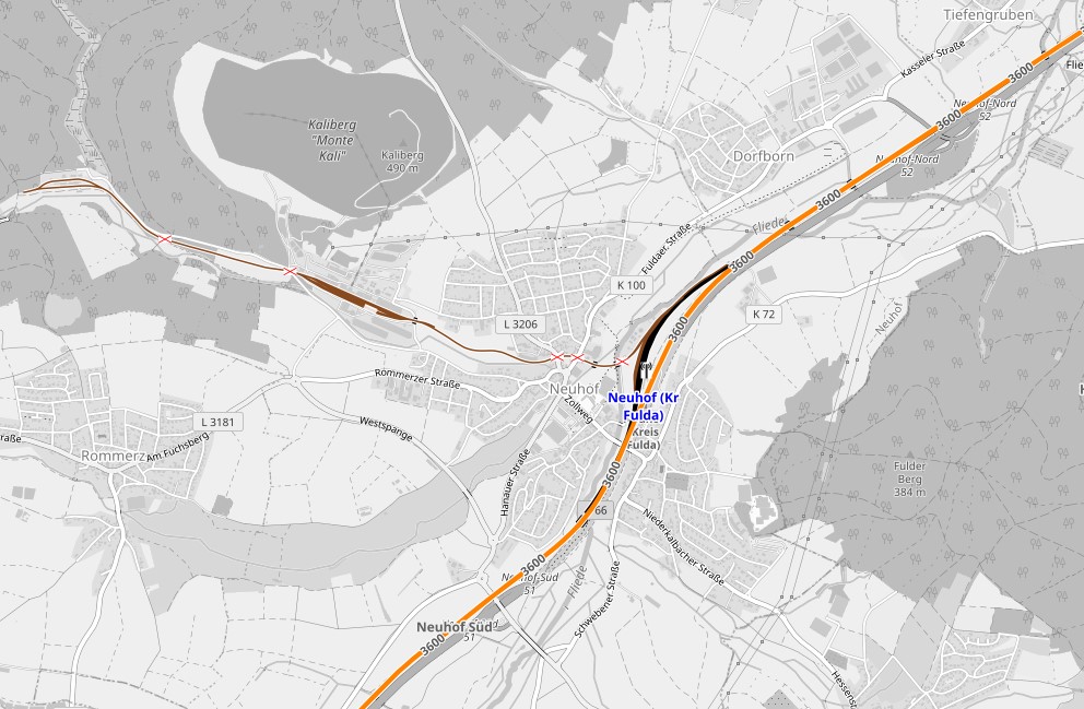 km 105,91 der Strecke Gießen 0,0 - Alsfeld (Oberhess) 60,21 - Fulda 105,91 | ||