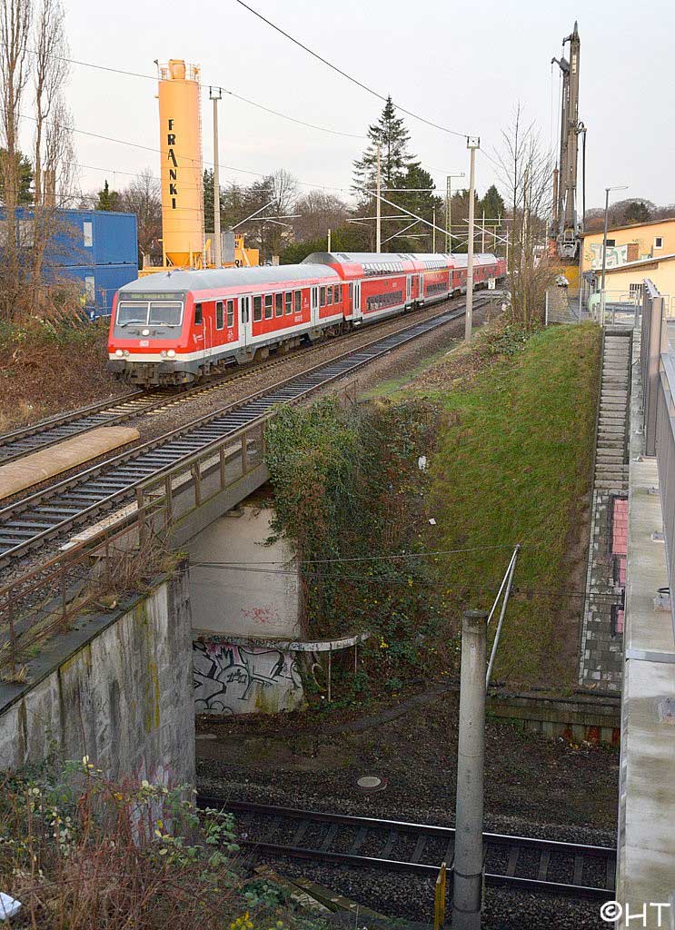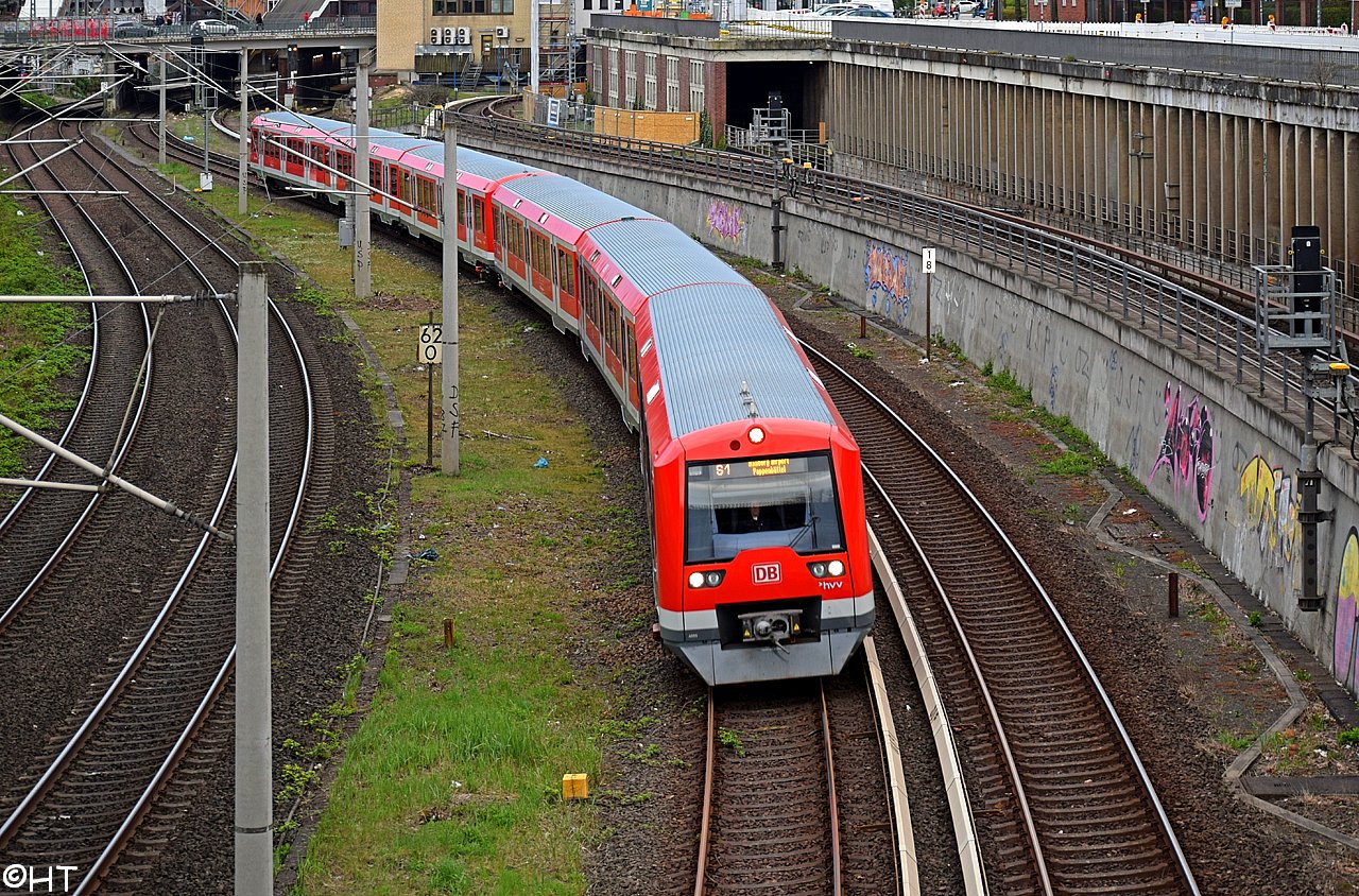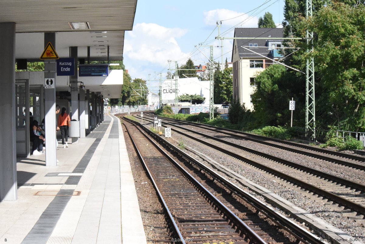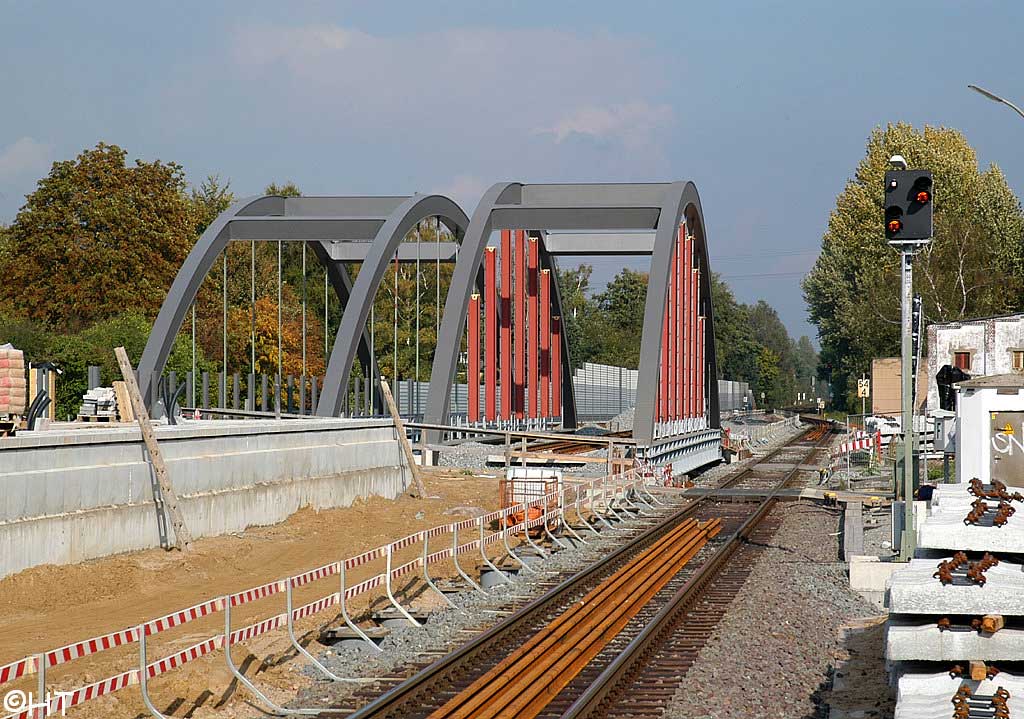 km 1,6 der S-Bahnstrecke, auf der Hochbahn die Linie U2