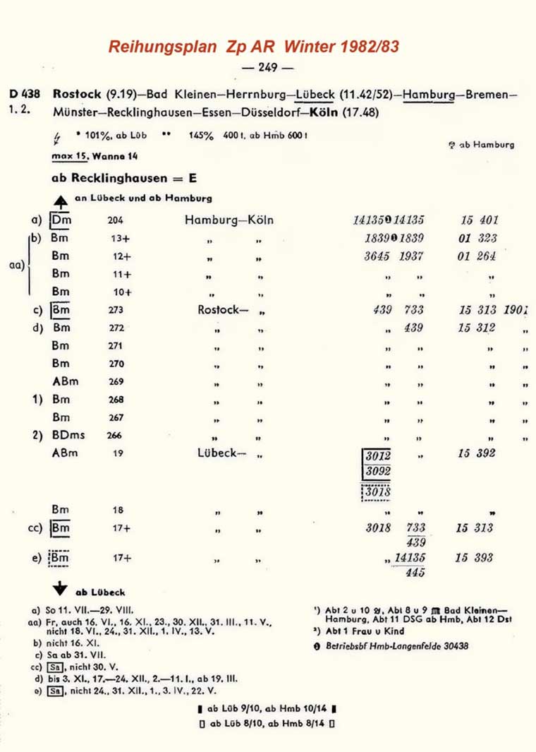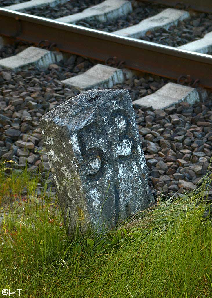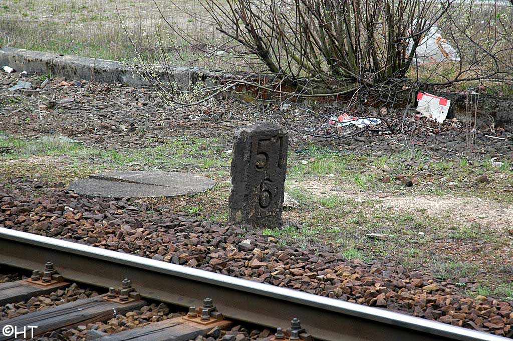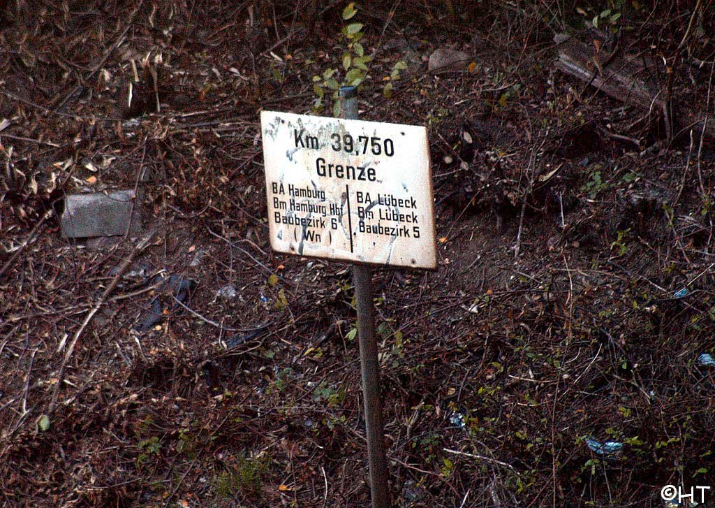 km 0,0 der Strecke Lübeck Hbf 0,0 - Grenze BRD/DDR 9,517 = km 6,912 - Herrnburg 7,53 - Bad Kleinen 59,32 - Güstrow 113,26 - Malchin 156,31 - Neubrandenburg 200,92 - ehemalige Grenze Mecklenburg/Preußen 232,26 = [km 62,00 - Strasburg (Uckerm) 60,20 - Pasewalk 41,93 - Grenze DDR/Polen 13,18 - Szczecin Główny (Stettin Hbf) 0,063] | ||