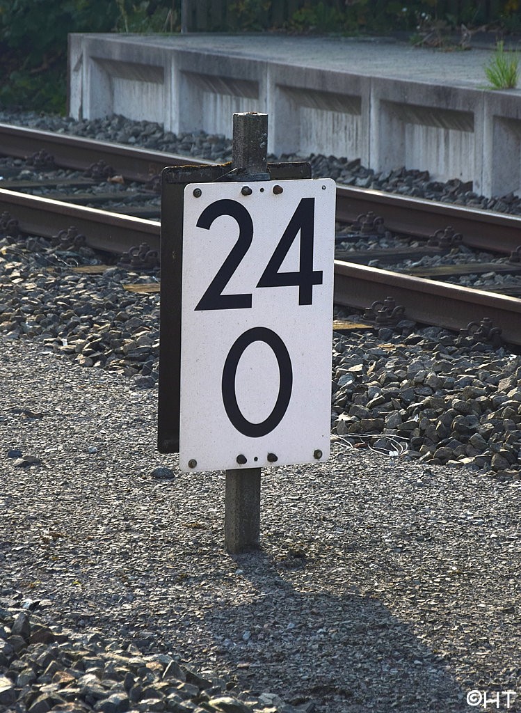 km 1,2 (rechte Tafel) gehört zur Strecke