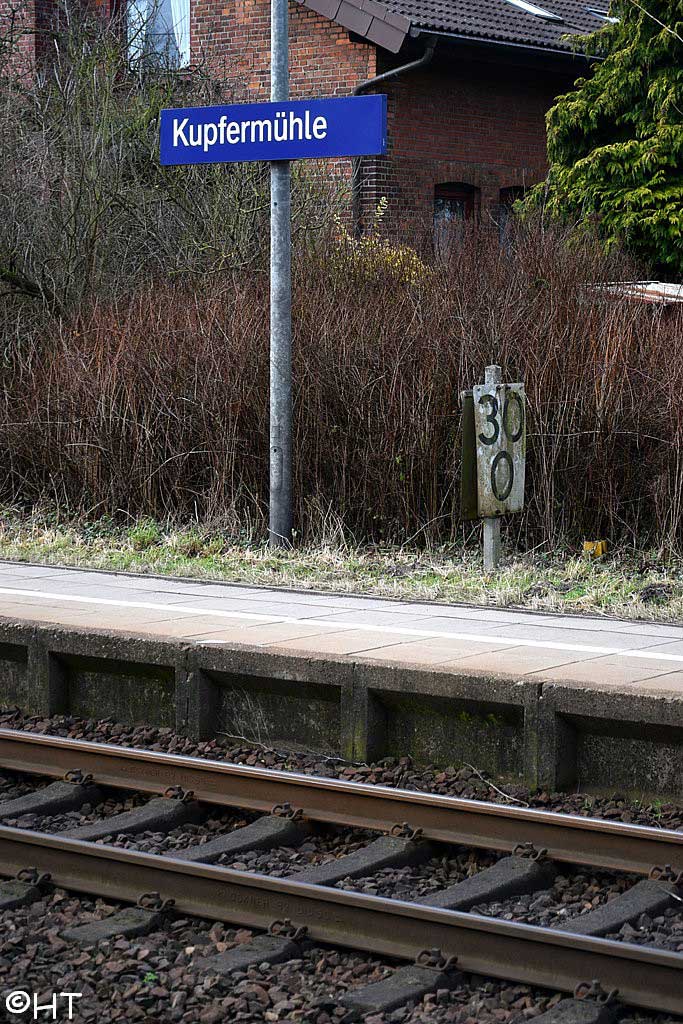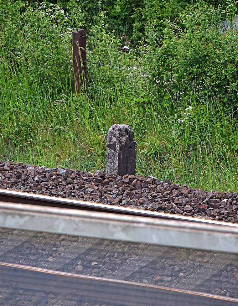 km 1,2 (rechte Tafel) gehört zur Strecke Lübeck Hbf - Büchen (1121)