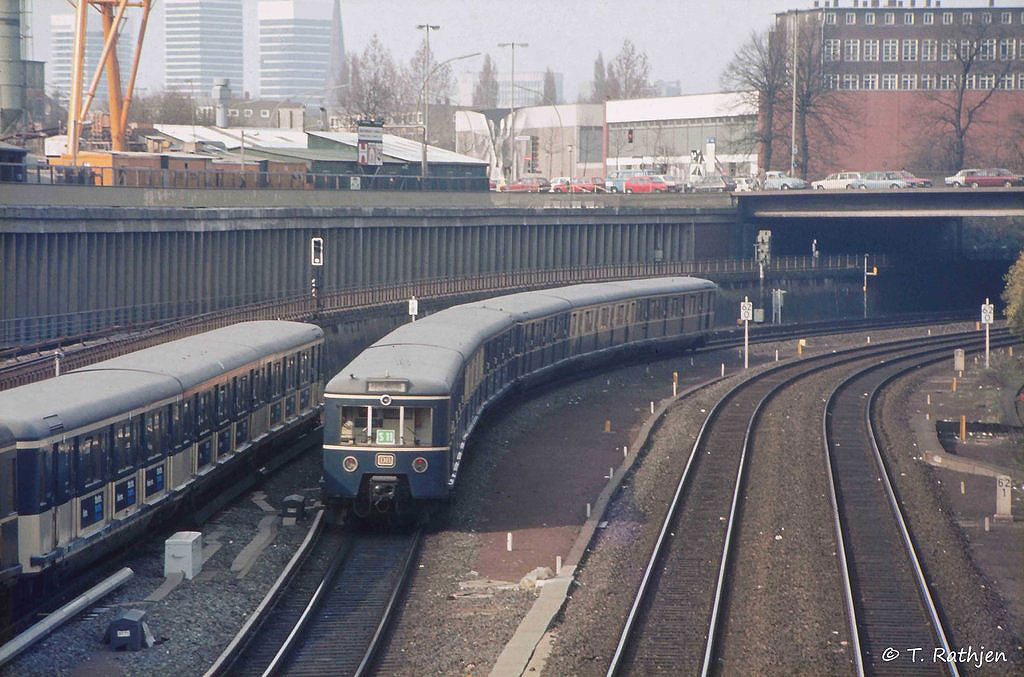 Das höherliegende Gleis (links) gehört zu Hamburger Hochbahn