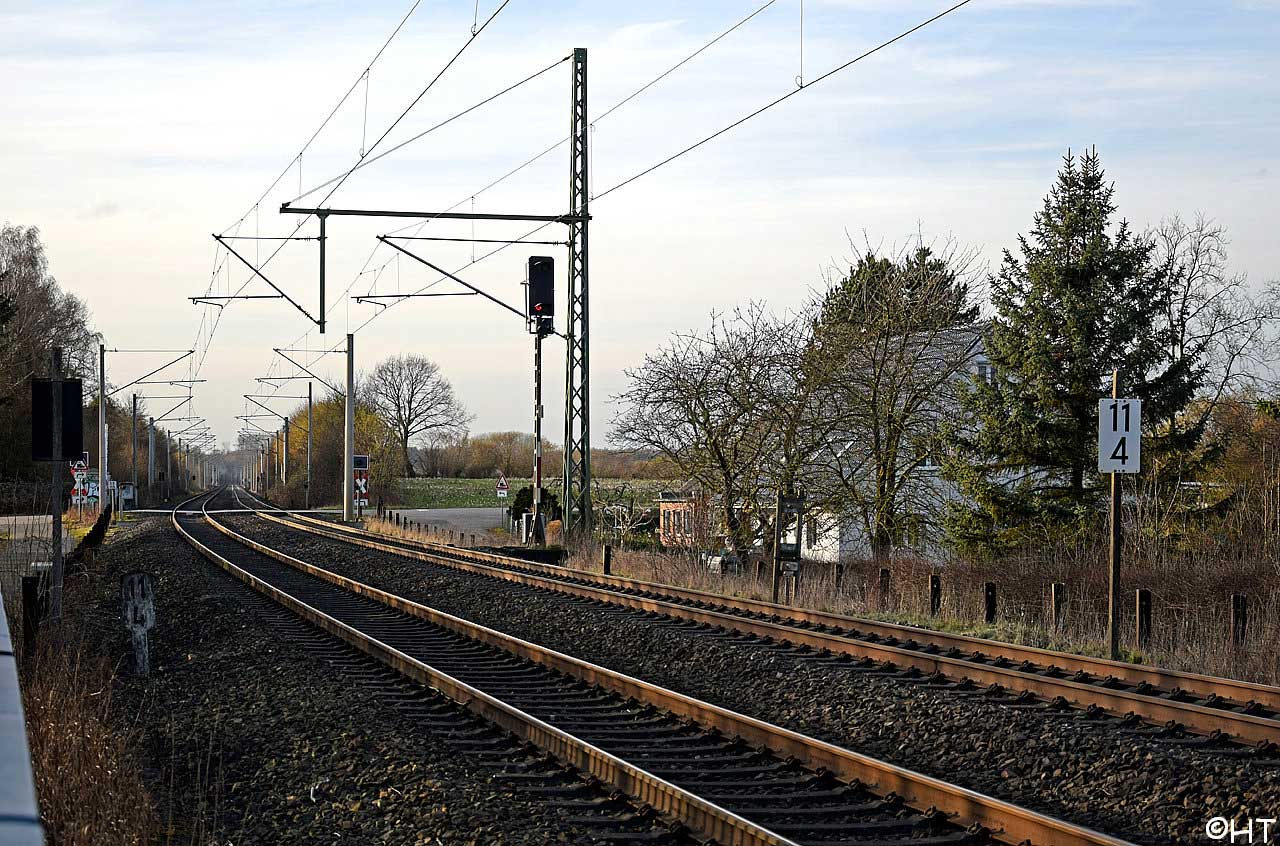 Das rechte Gleis gehört zur Strecke Lübeck Hbf - Büchen