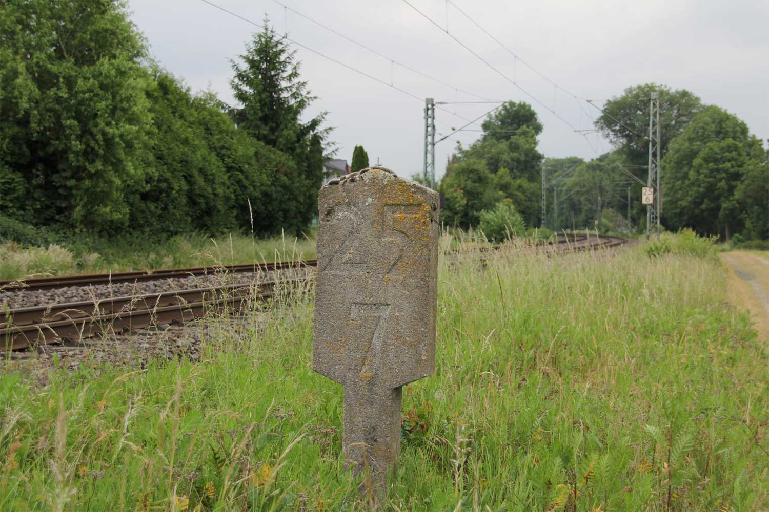 Durch den Oberleitungsmast ist noch km 2,4 zu erkennen.
