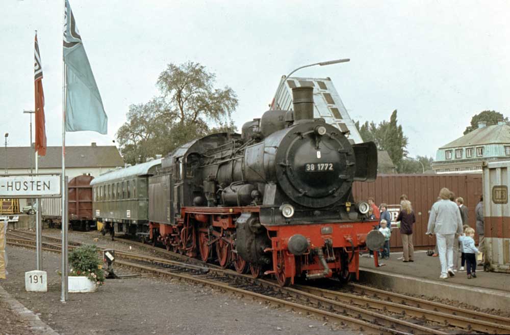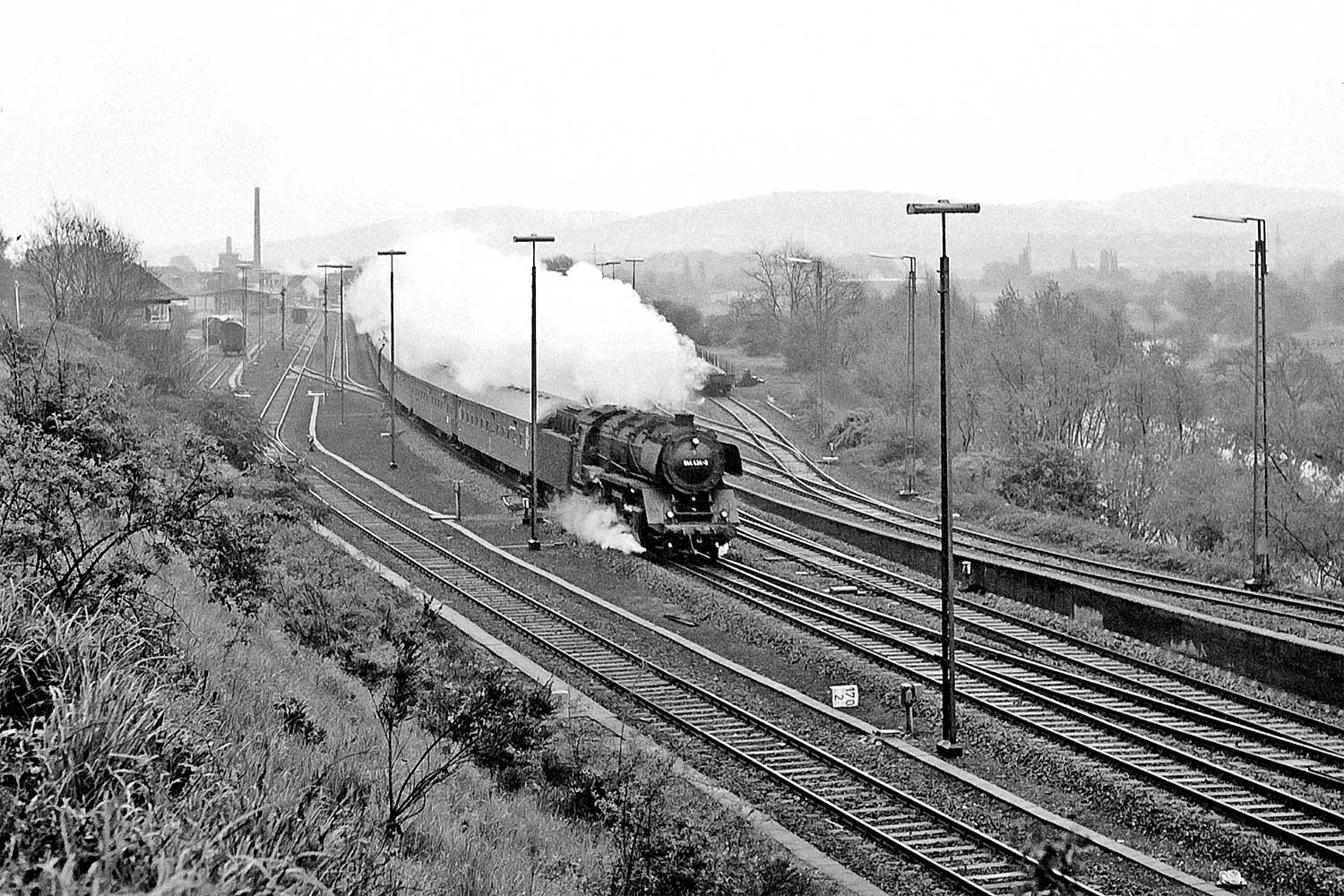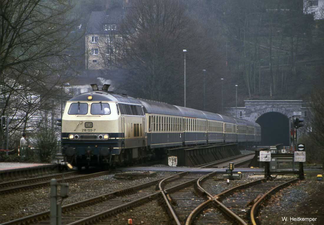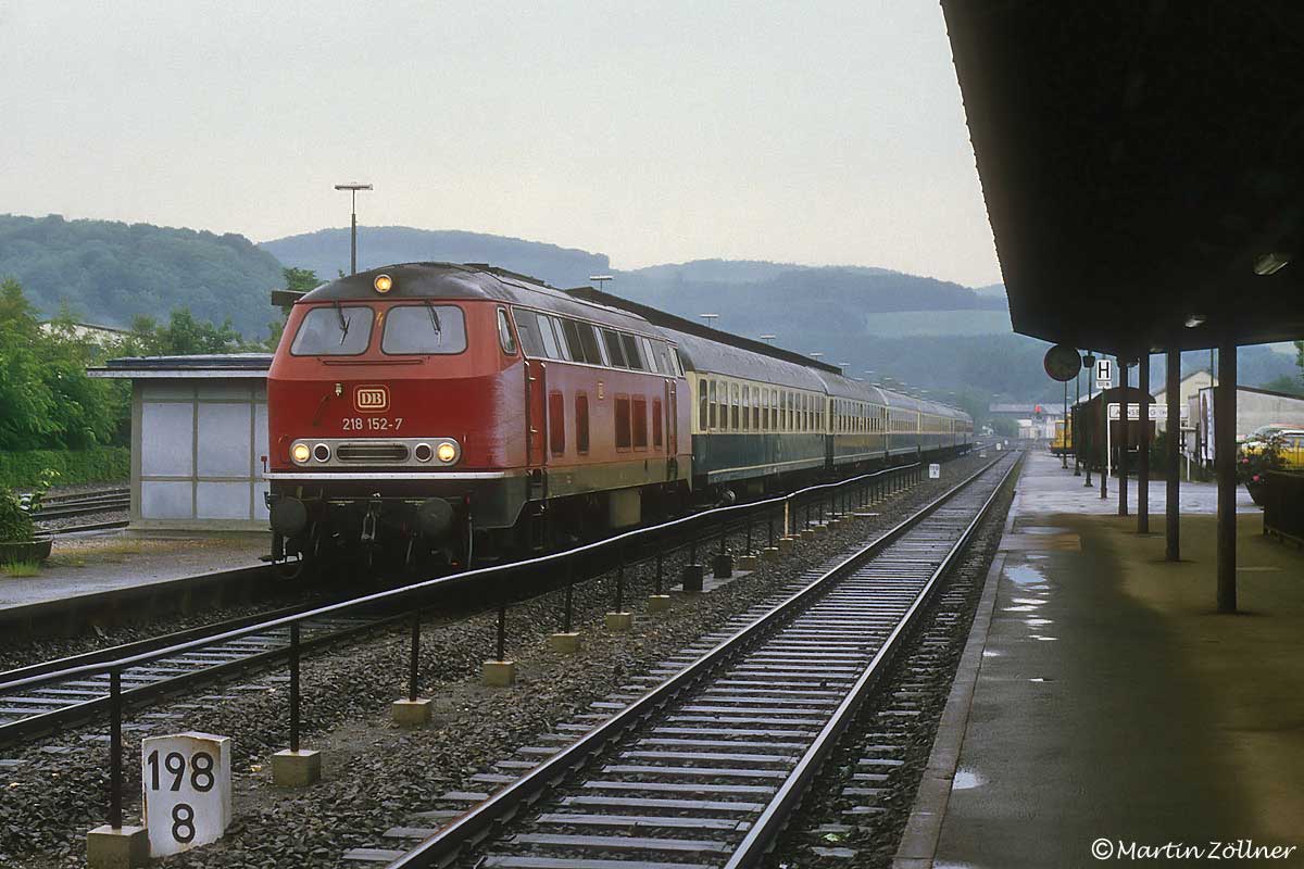Arnsberg (Westf) - km 199,1 - 218 128 mit Schnellzug Bebra - Köln im Mai 1985
