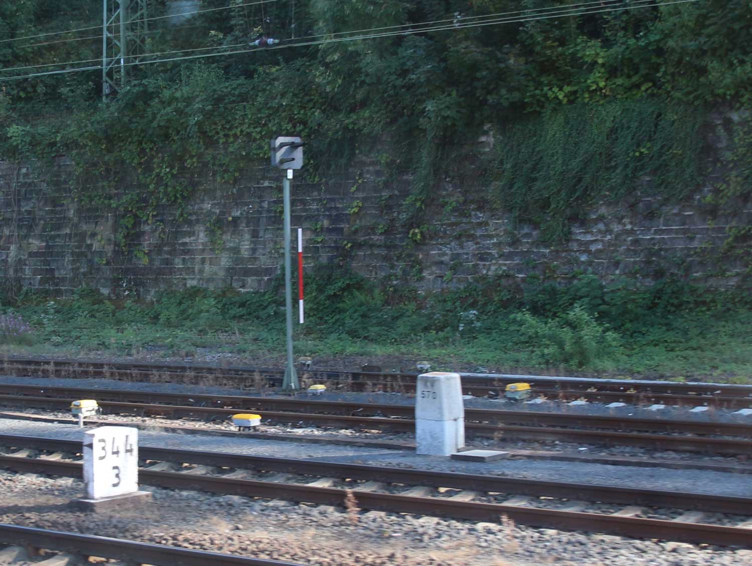 km 1,8 (Stein und Tafel) gehört zum Gegenrichtungsgleis der Strecke