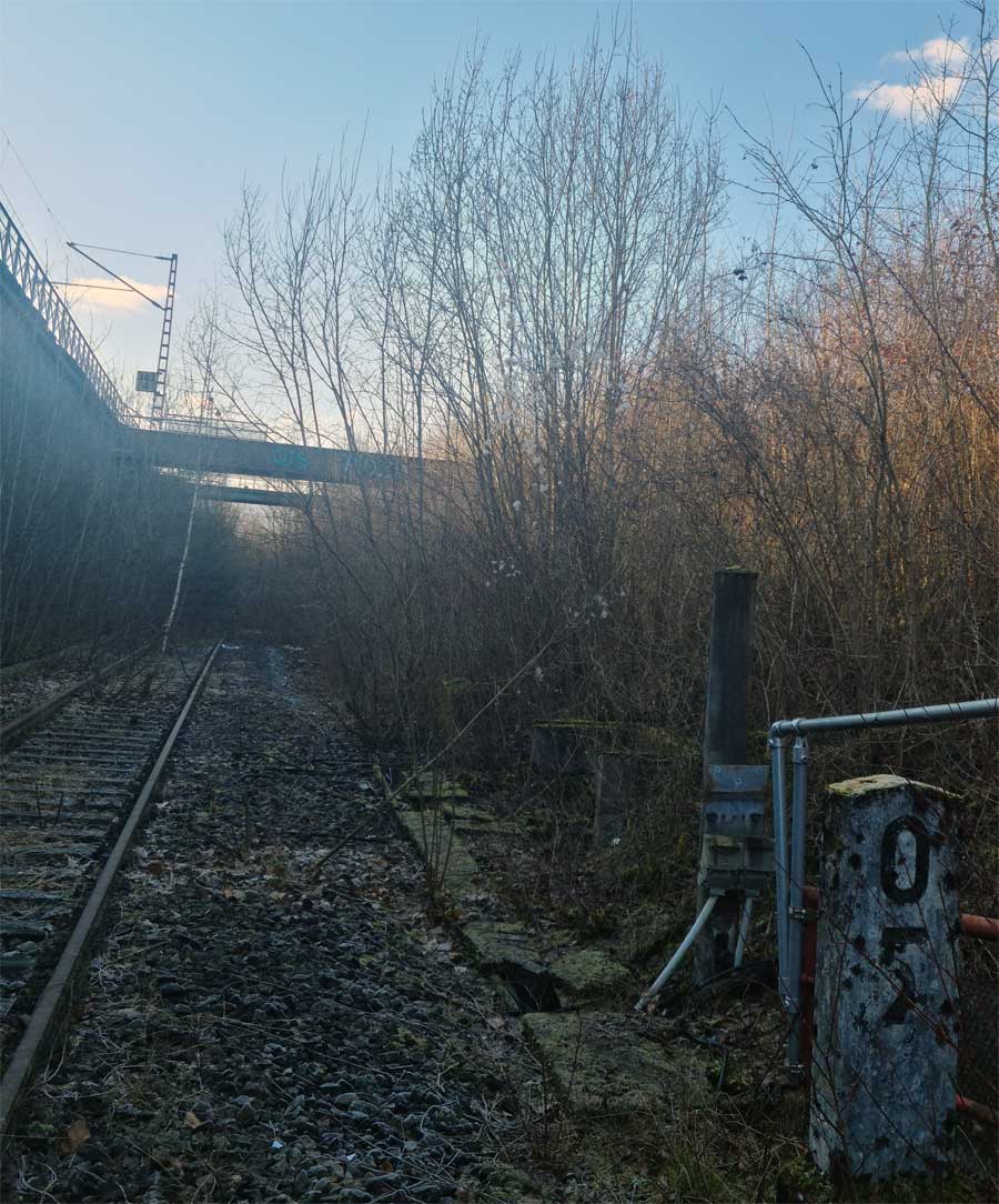 Rechts die Gleise des Streckenastes