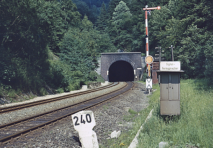 Meiner Auffassung nach wurde nun von Richterich rückwärts die Kilometrierung verändert. Da die Strecke zwischen Aachen West und Richterich um 450 - 500 m länger wurde, ergab sich von der Grenze im Gemmenicher Tunnel zunächst ein Streckenstück von km 0,0 bis ca. km 0,45 und dann begann die Kilometrierung erneut von km 0,0. Anzeichen einer negativen Kilometrierung liegen nicht vor. |