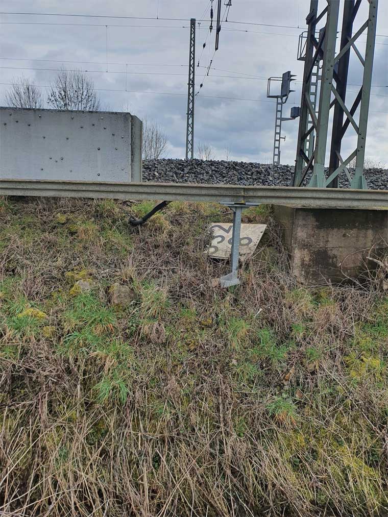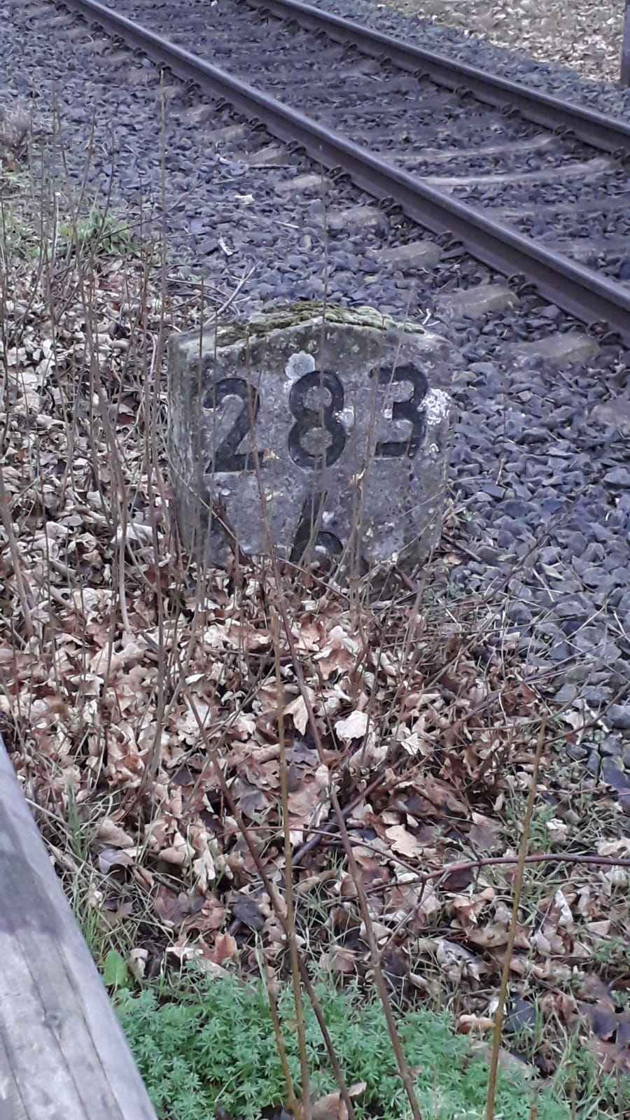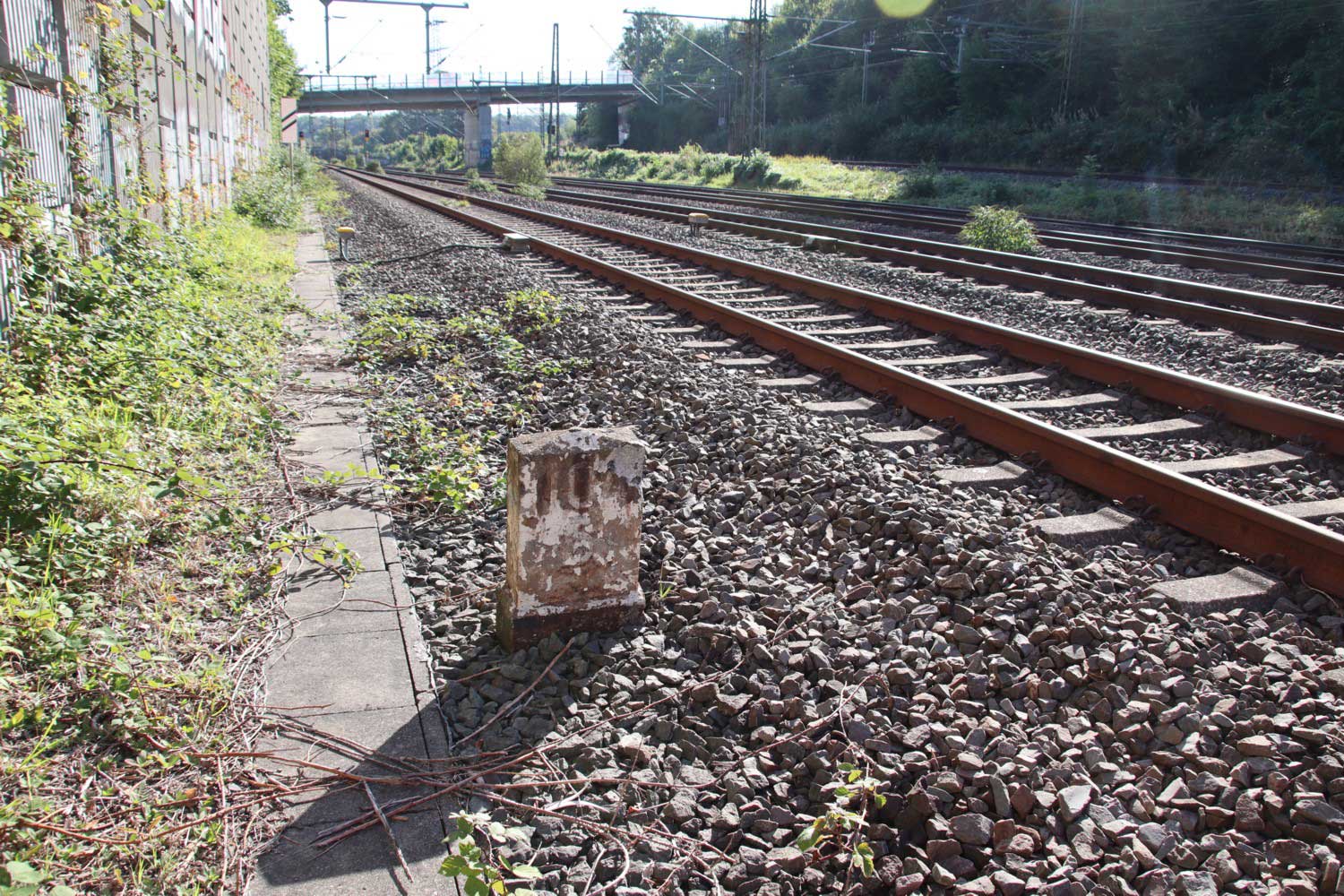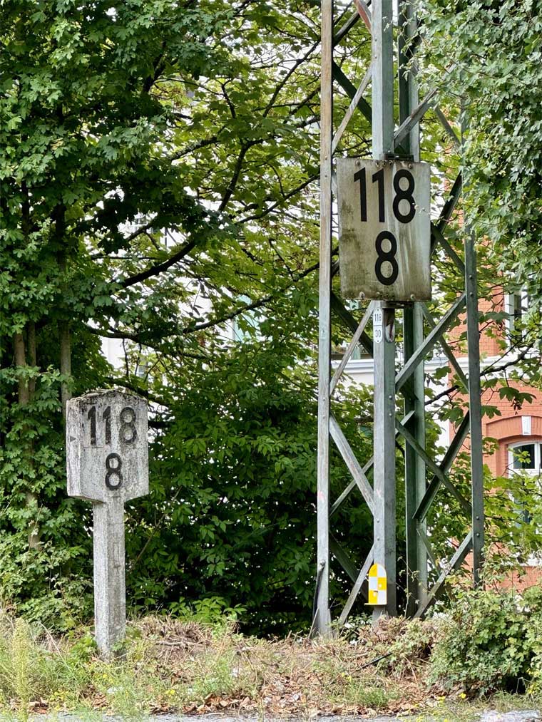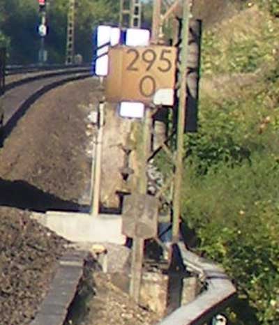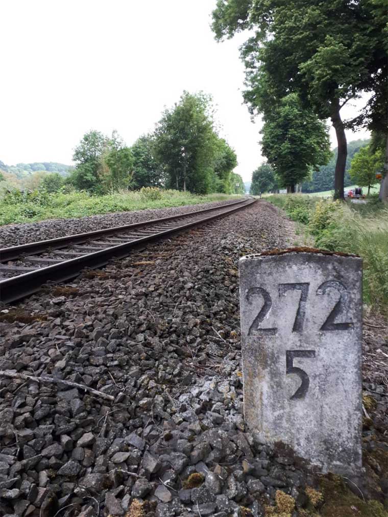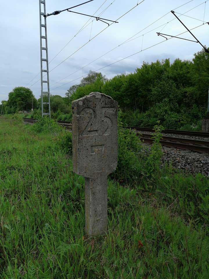 km 1,8 (Stein und Tafel) gehört zum Gegenrichtungsgleis der Strecke