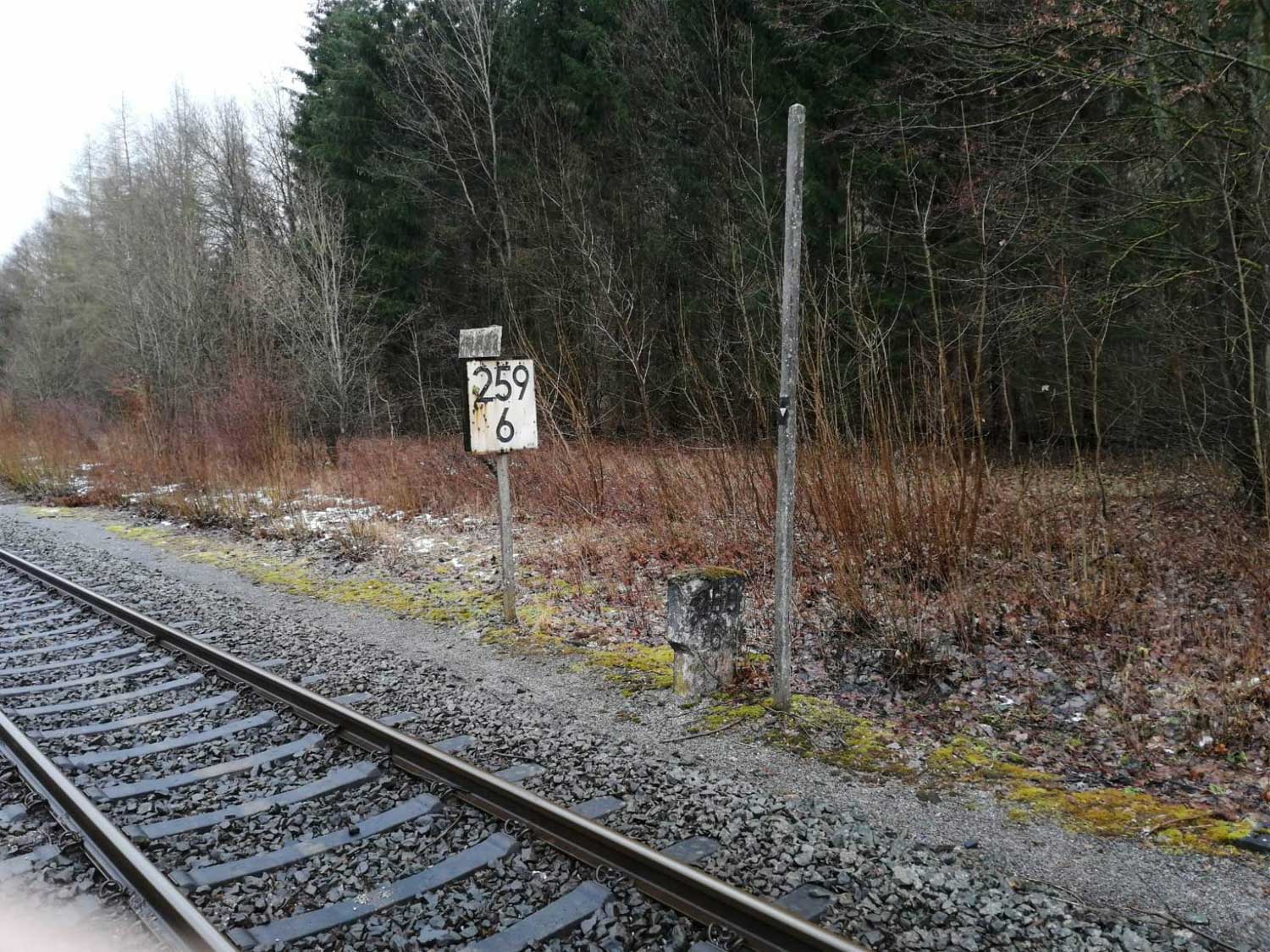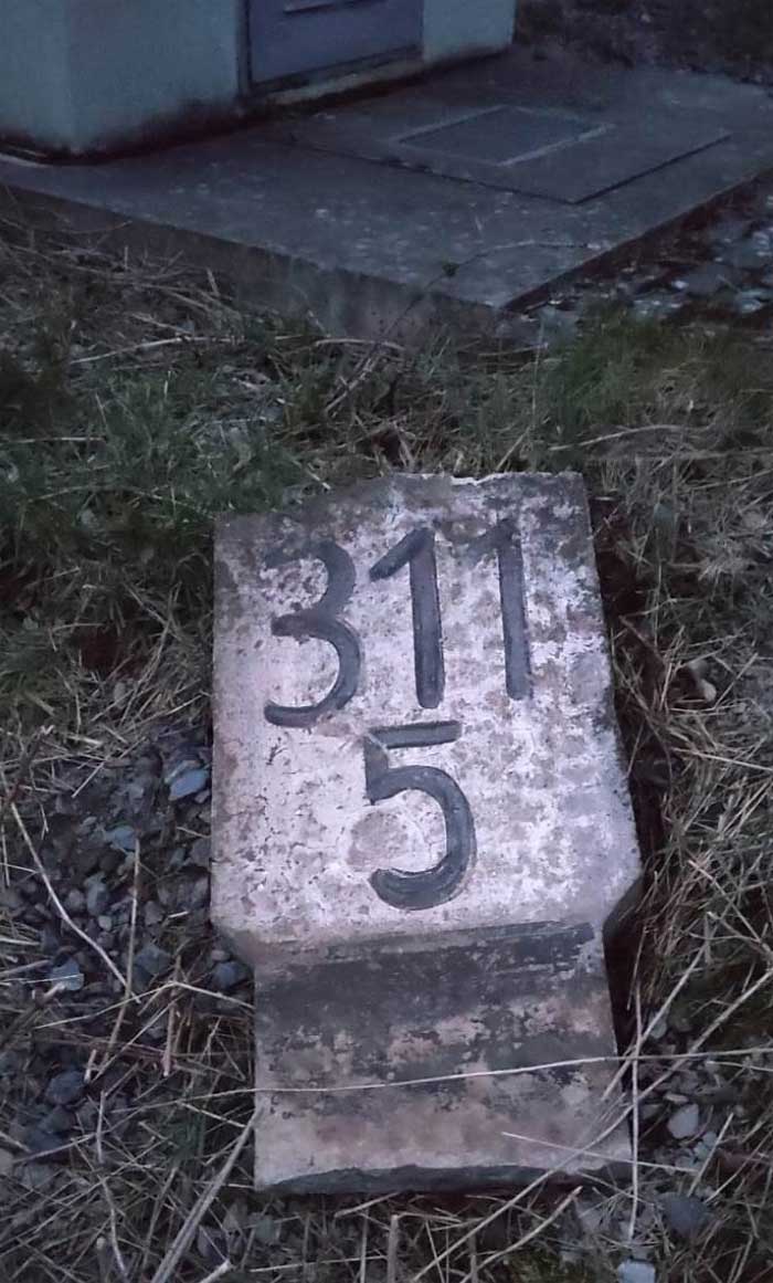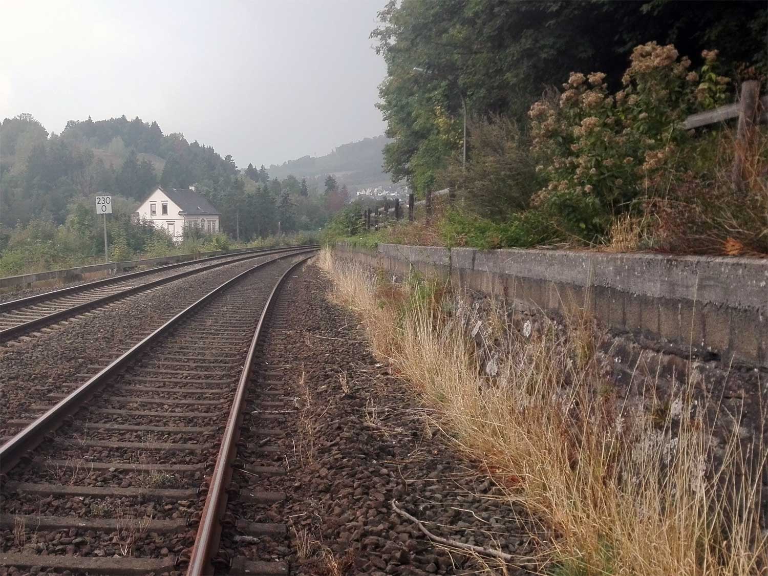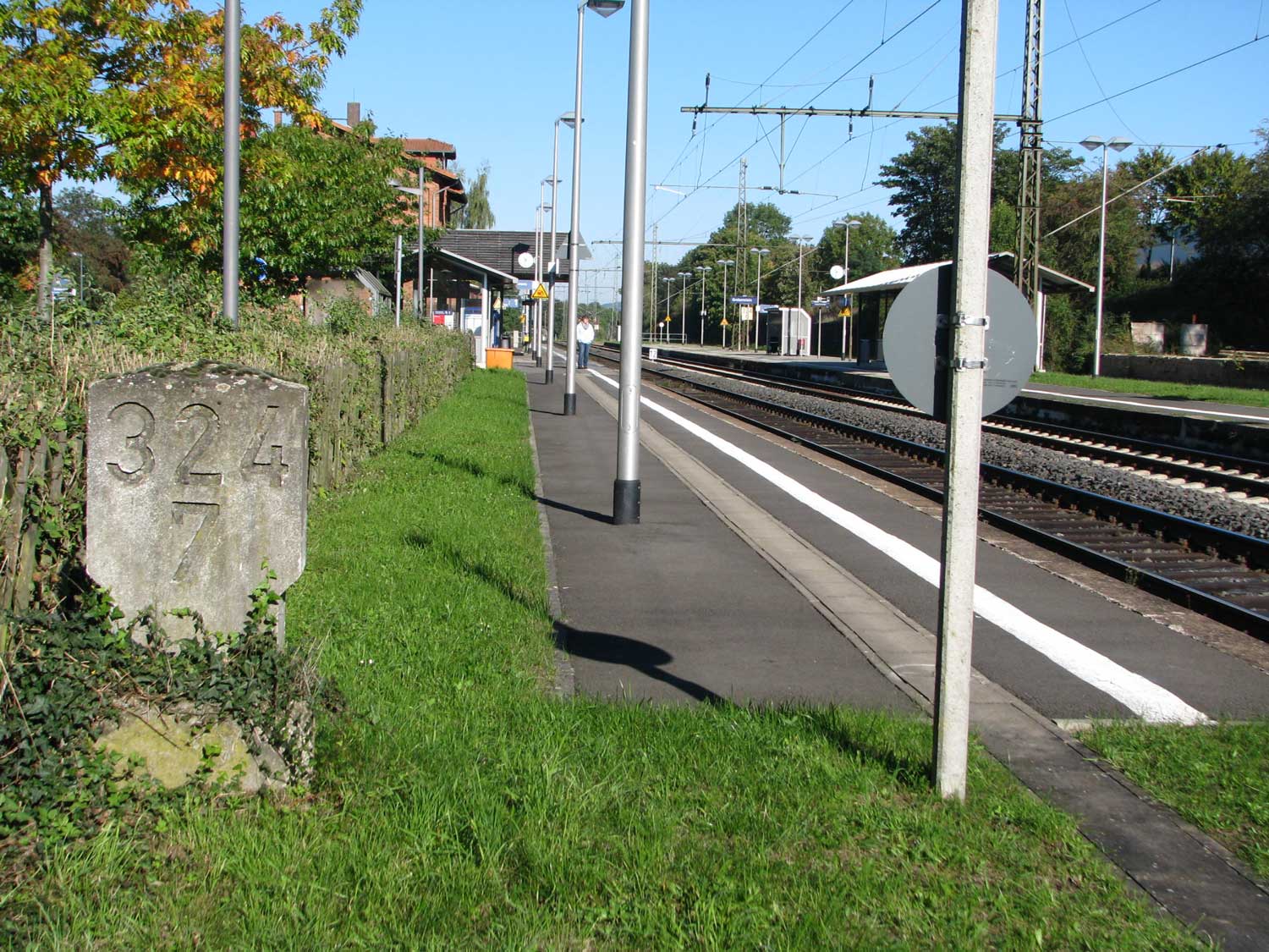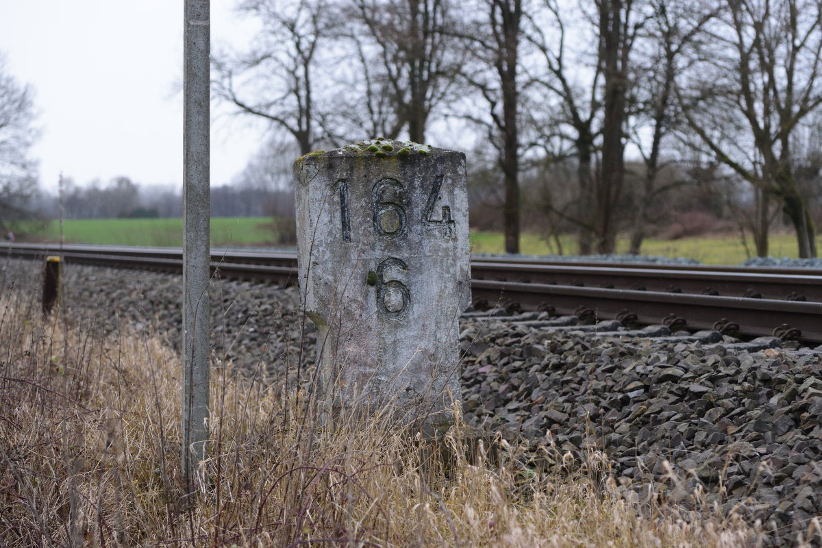 km 1,8 (Stein und Tafel) gehört zum Gegenrichtungsgleis der Strecke