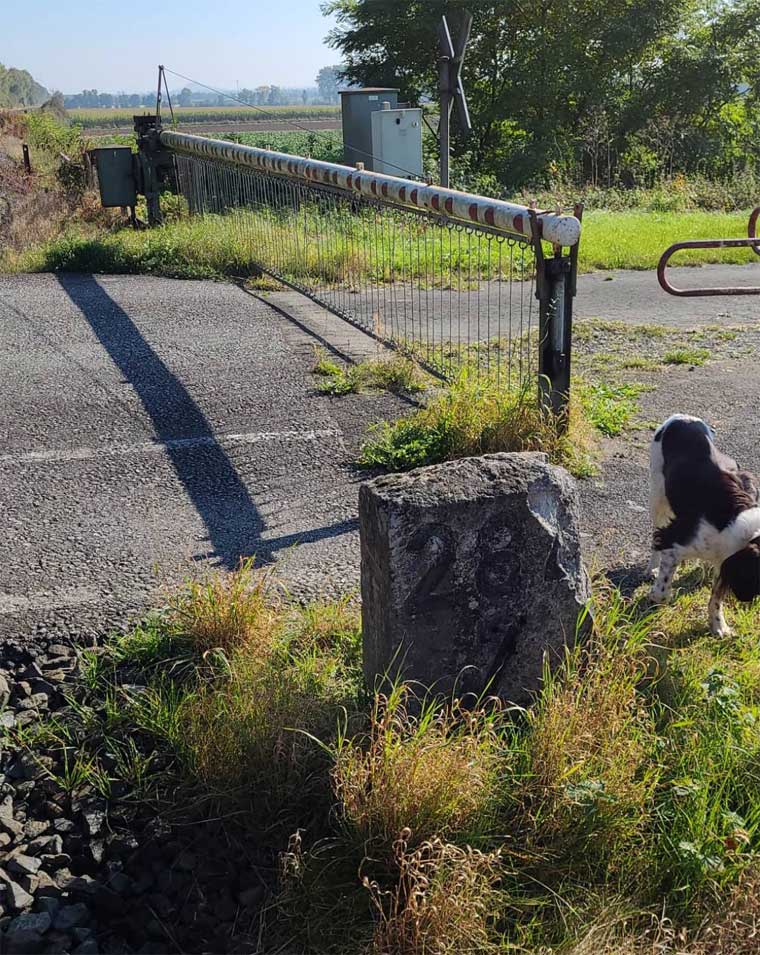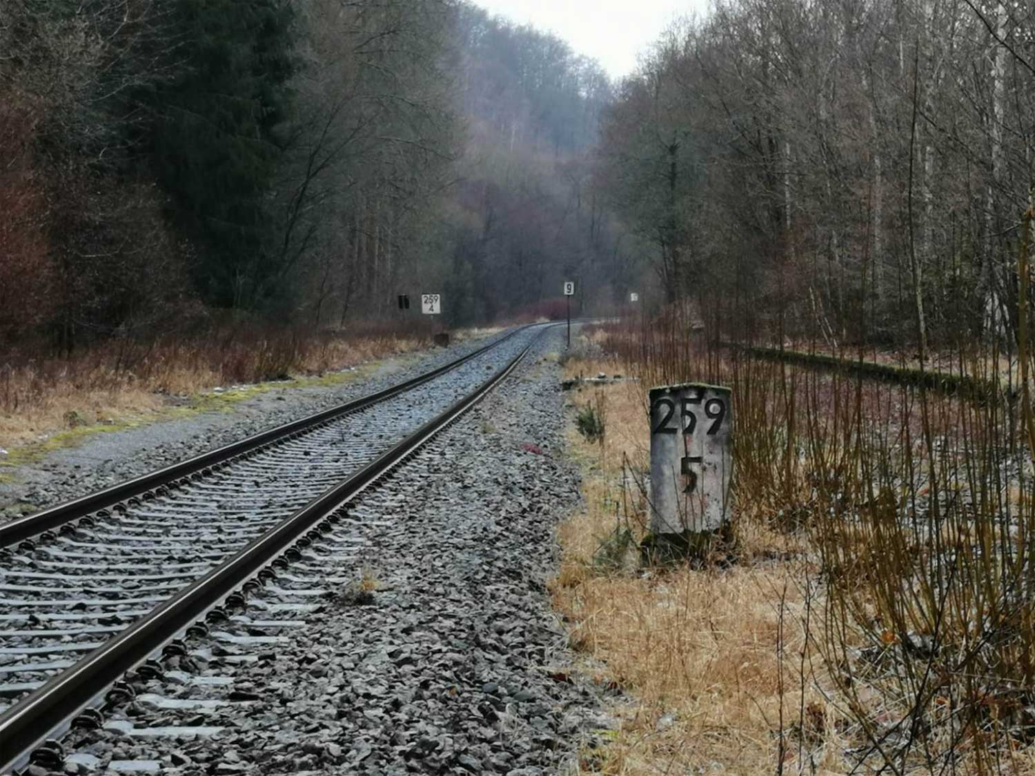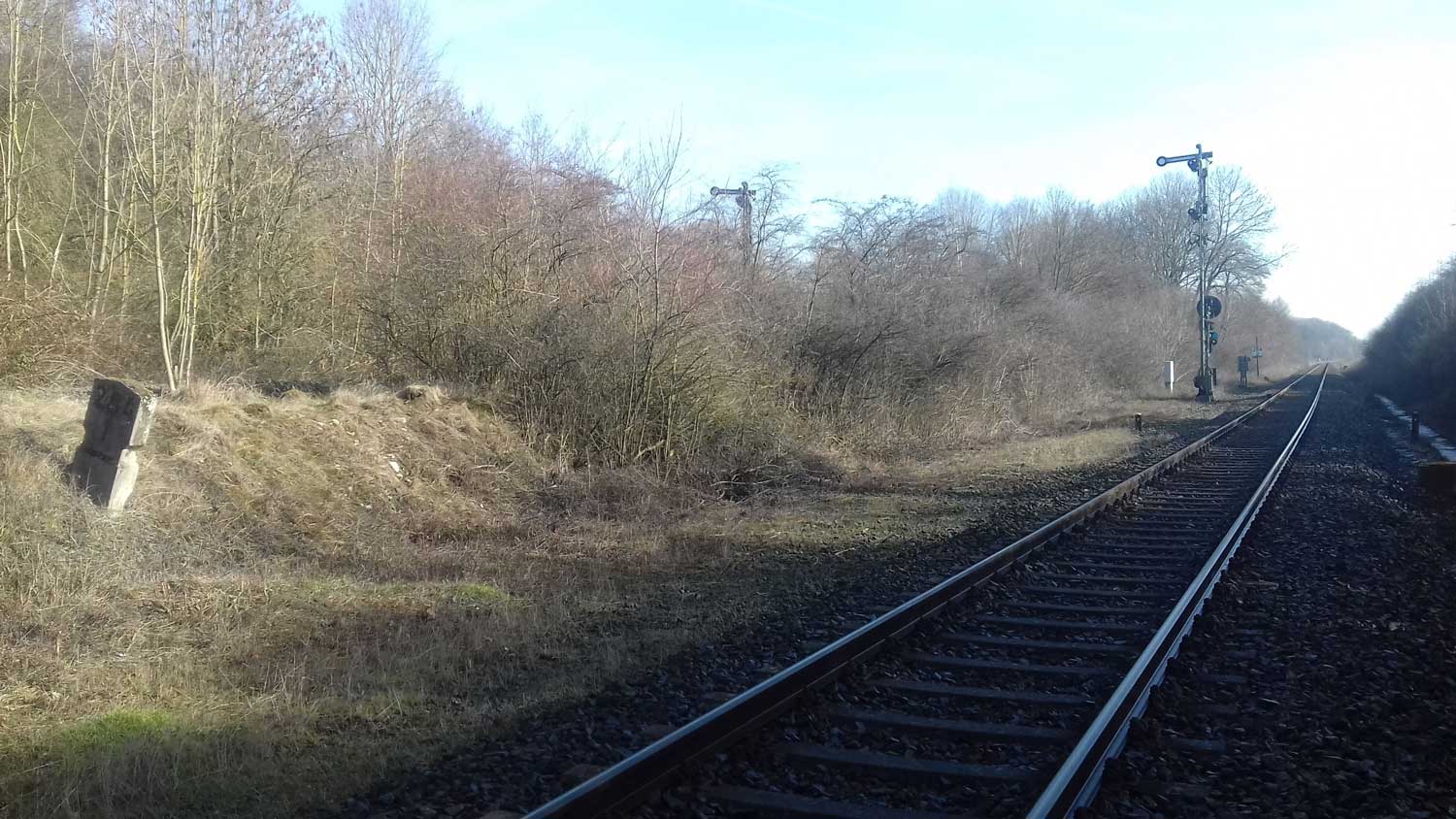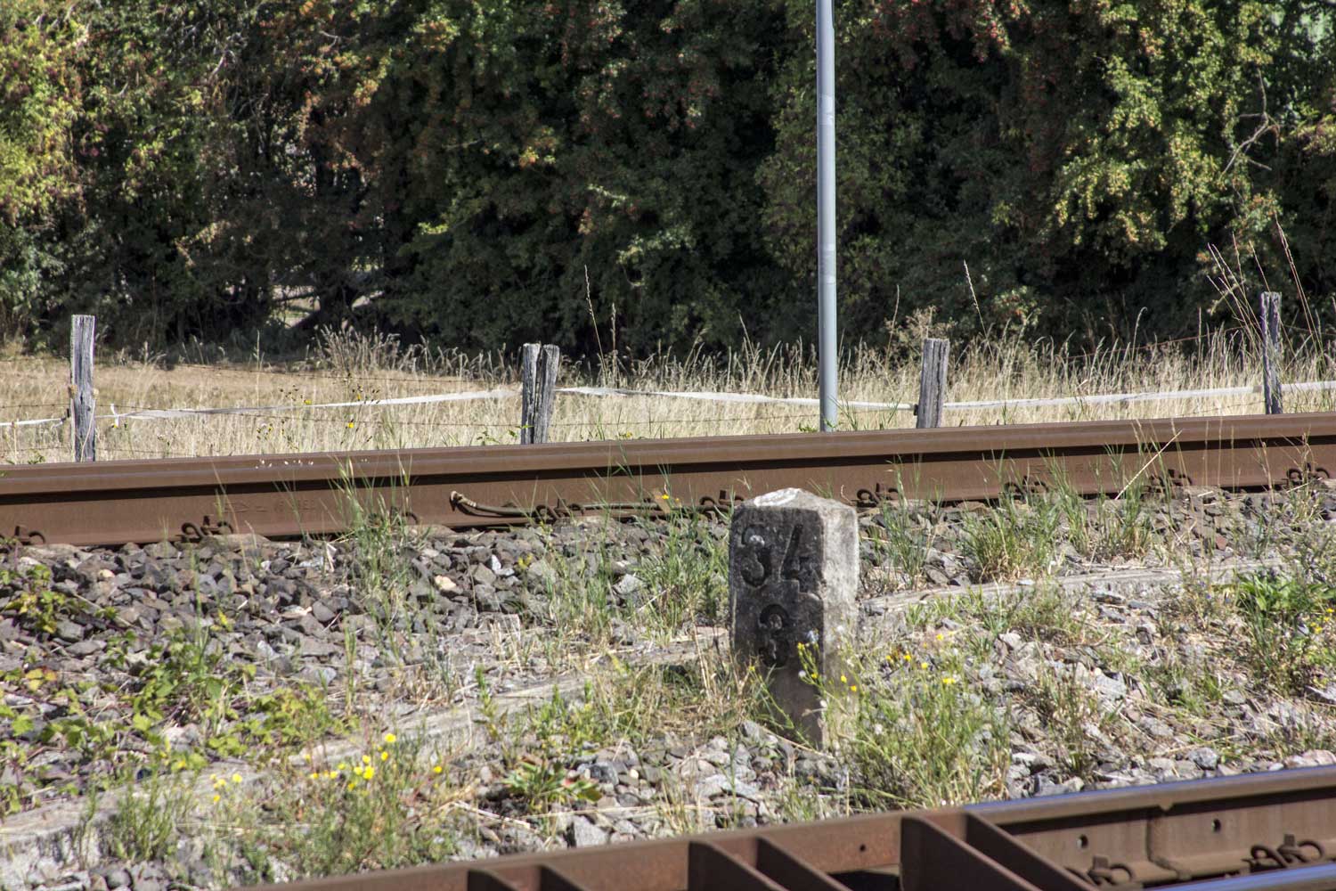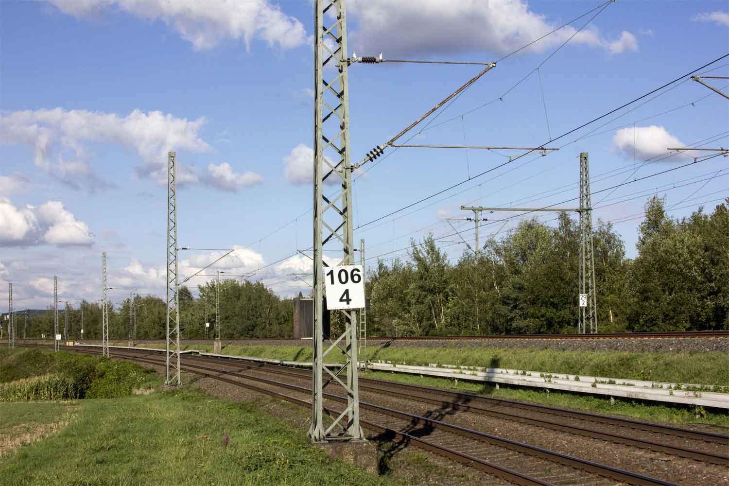 km 1,8 (Stein und Tafel) gehört zum Gegenrichtungsgleis der Strecke