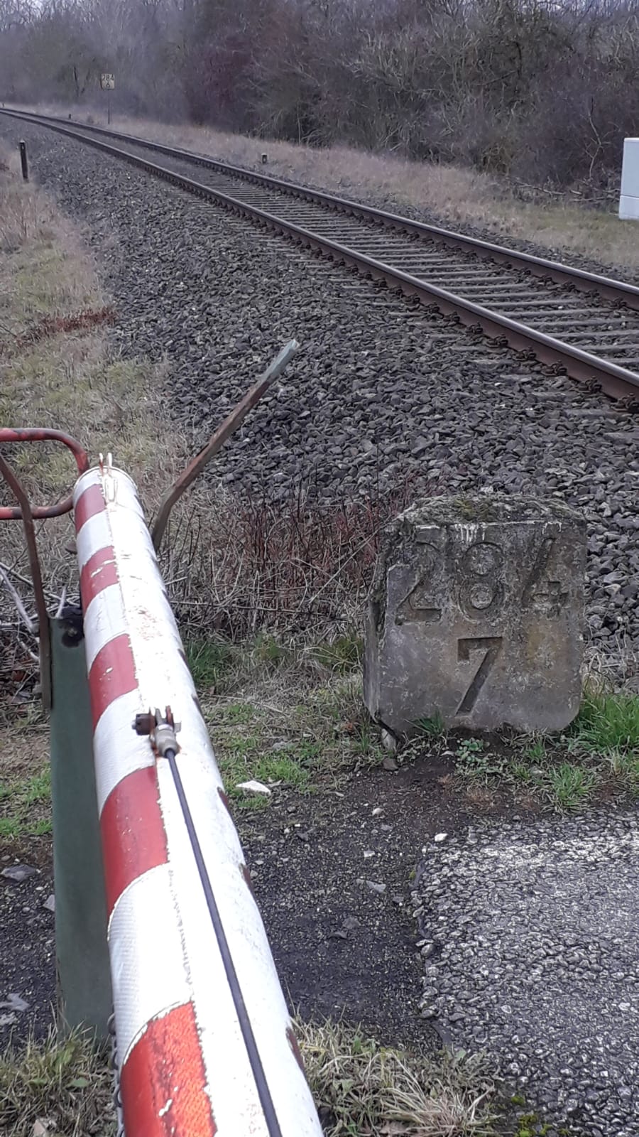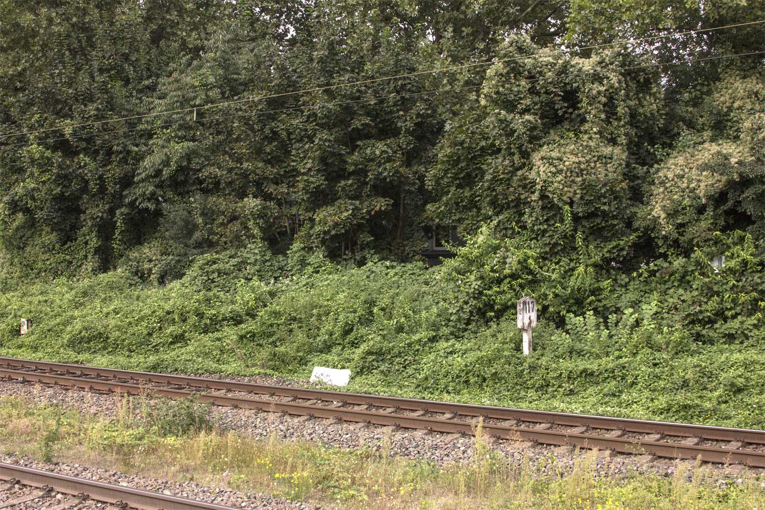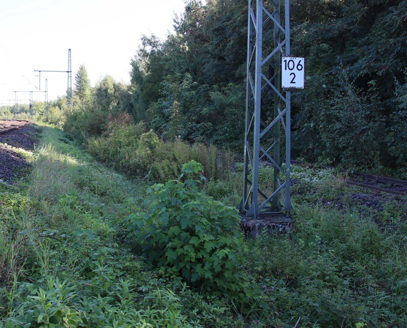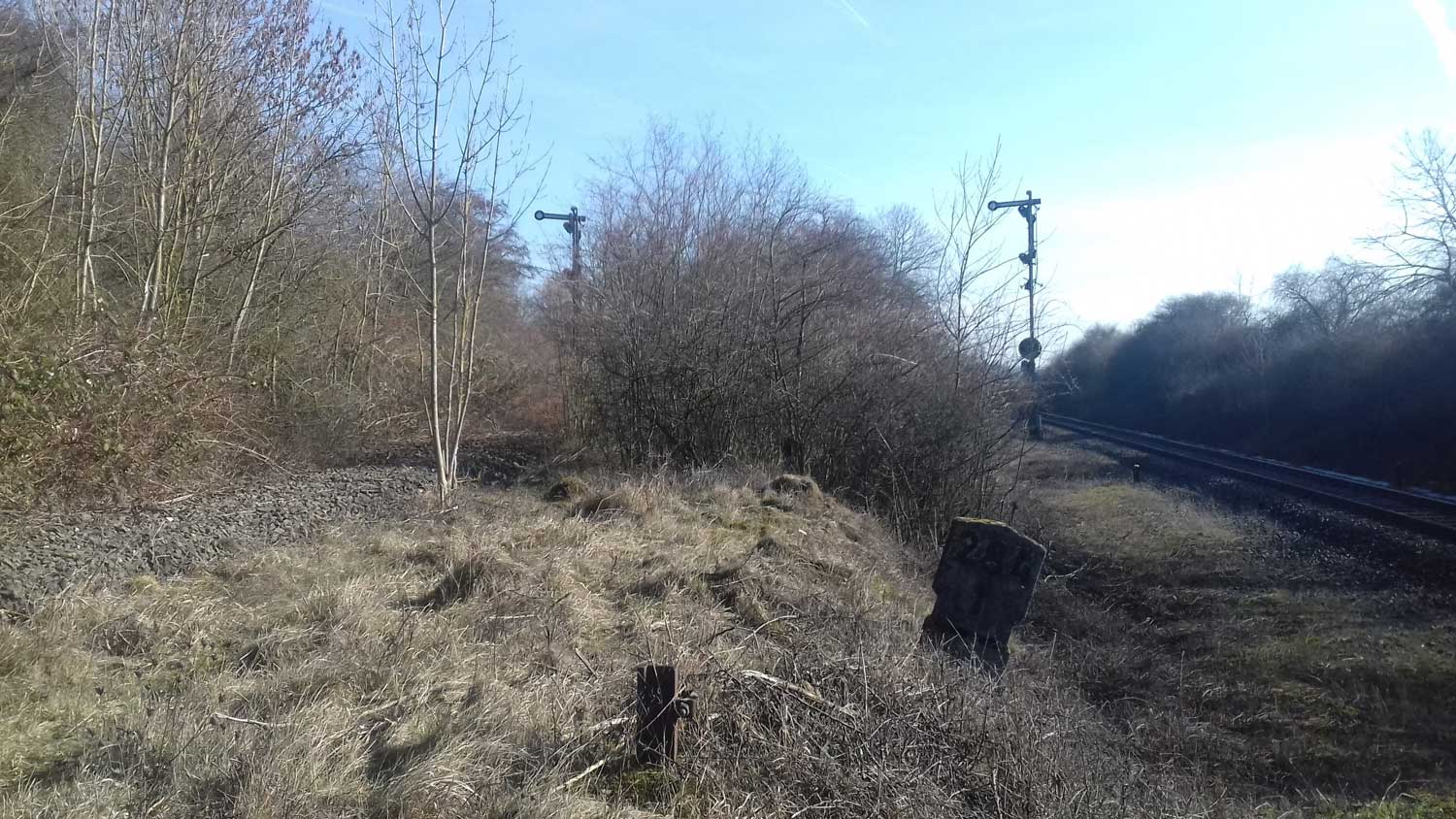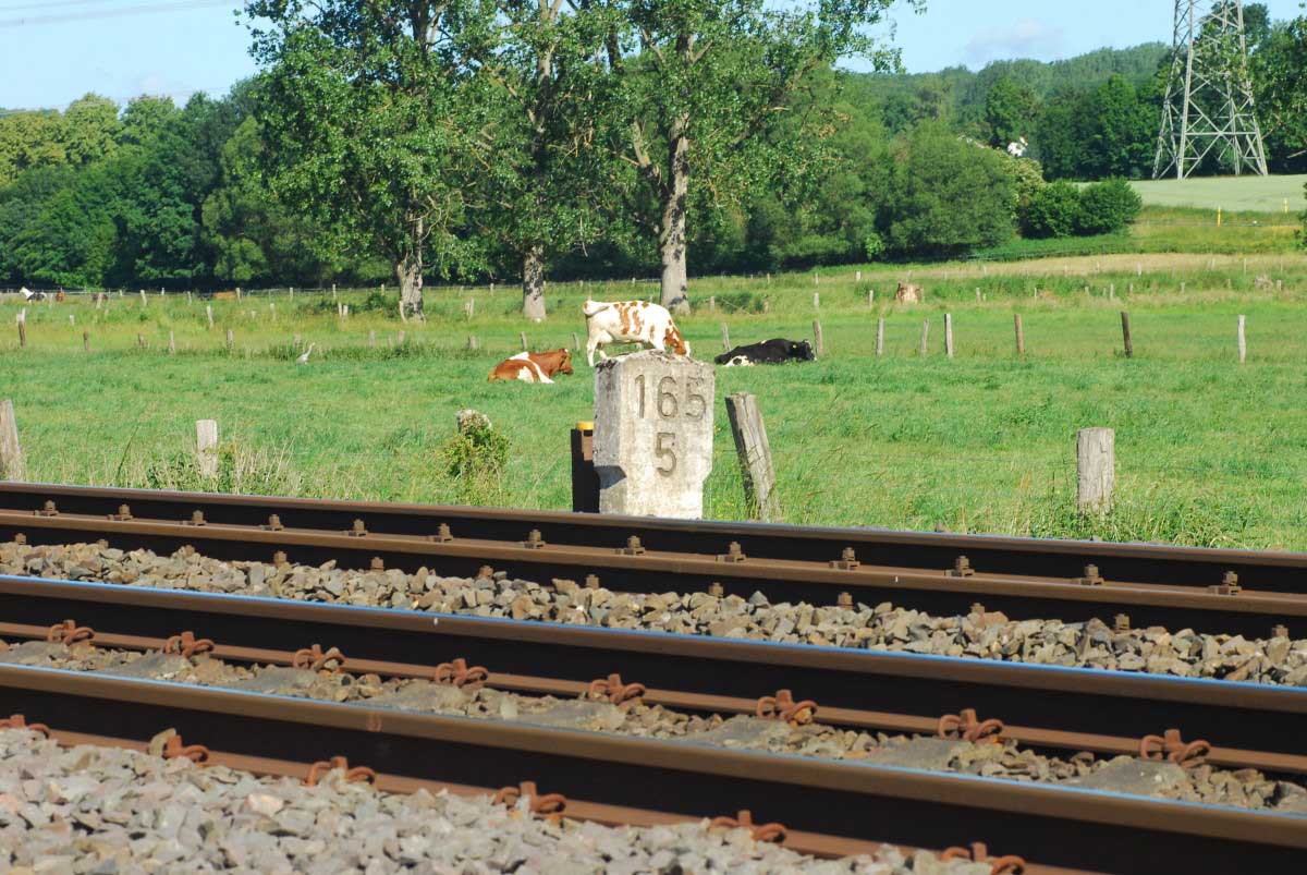 km 1,8 (Stein und Tafel) gehört zum Gegenrichtungsgleis der Strecke