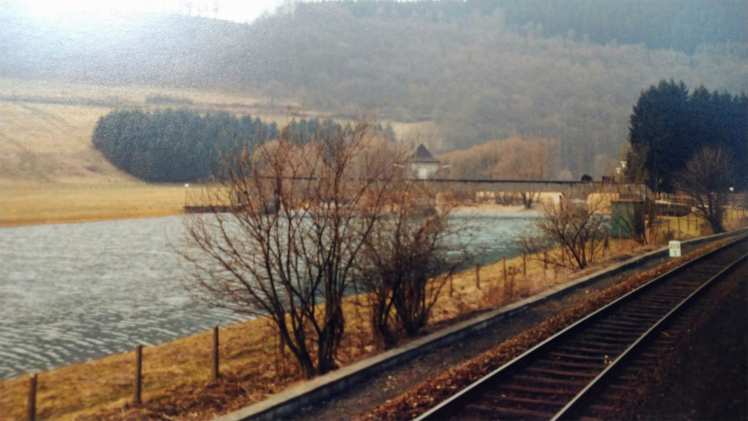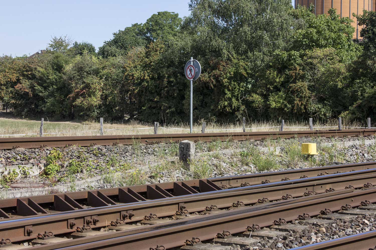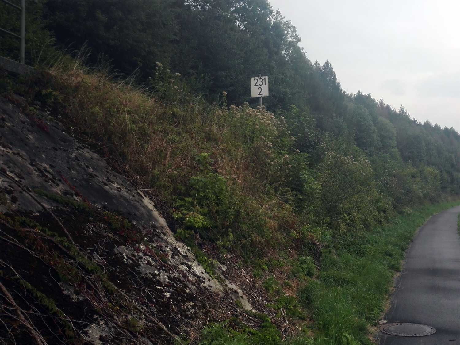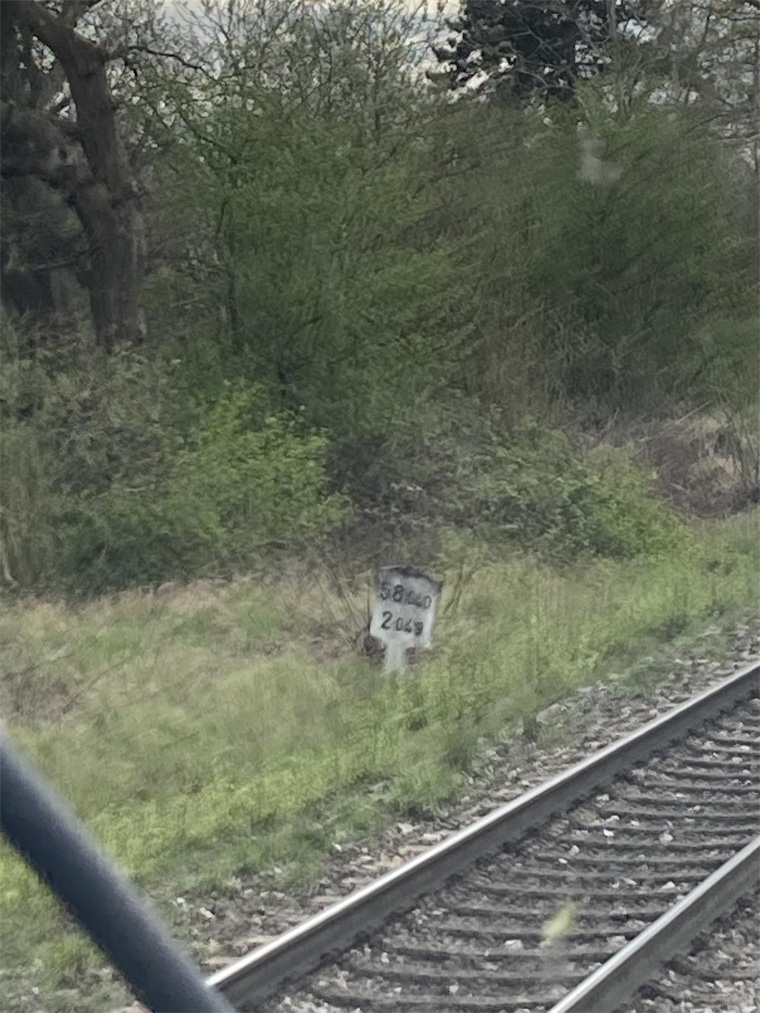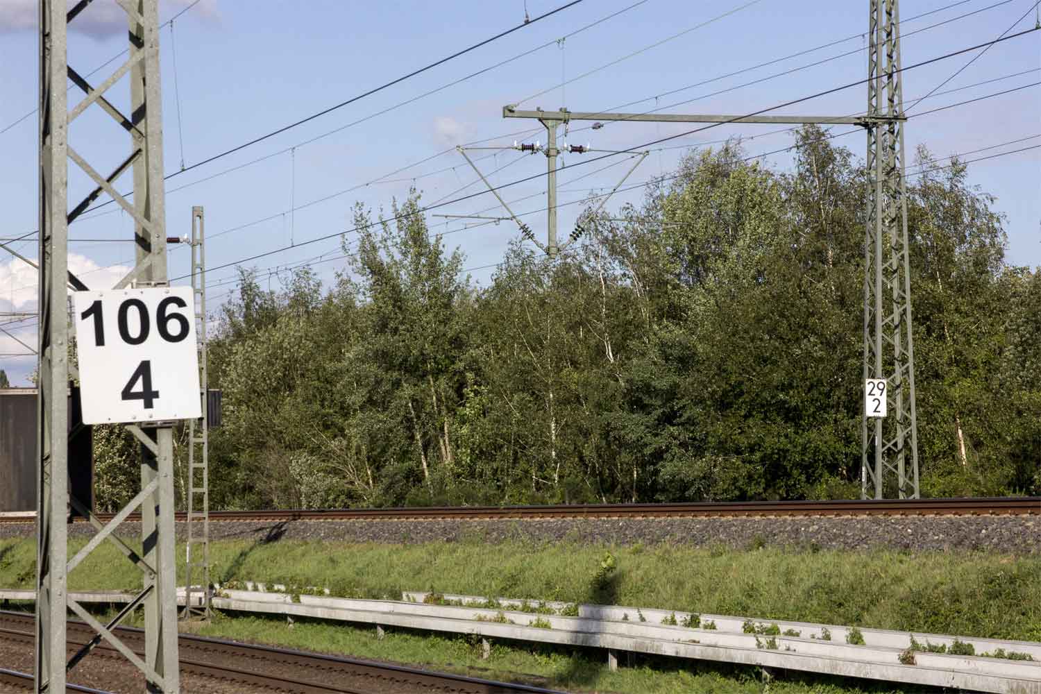 km 1,8 (Stein und Tafel) gehört zum Gegenrichtungsgleis der Strecke