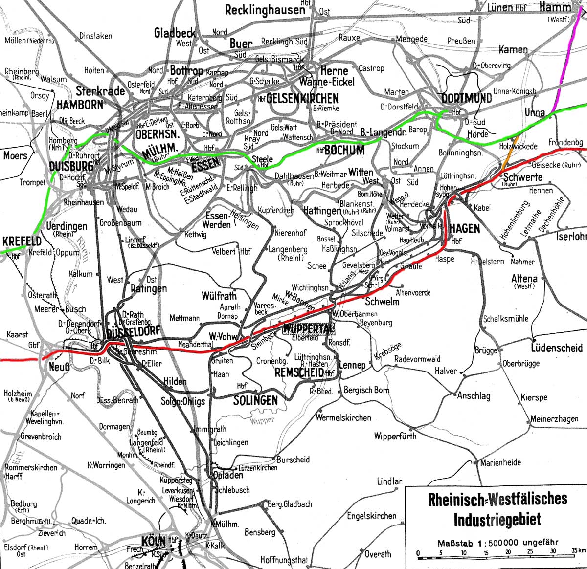 Streckenverlegungen. Die Überlängen wurden an der früheren Köln/Elberfelder