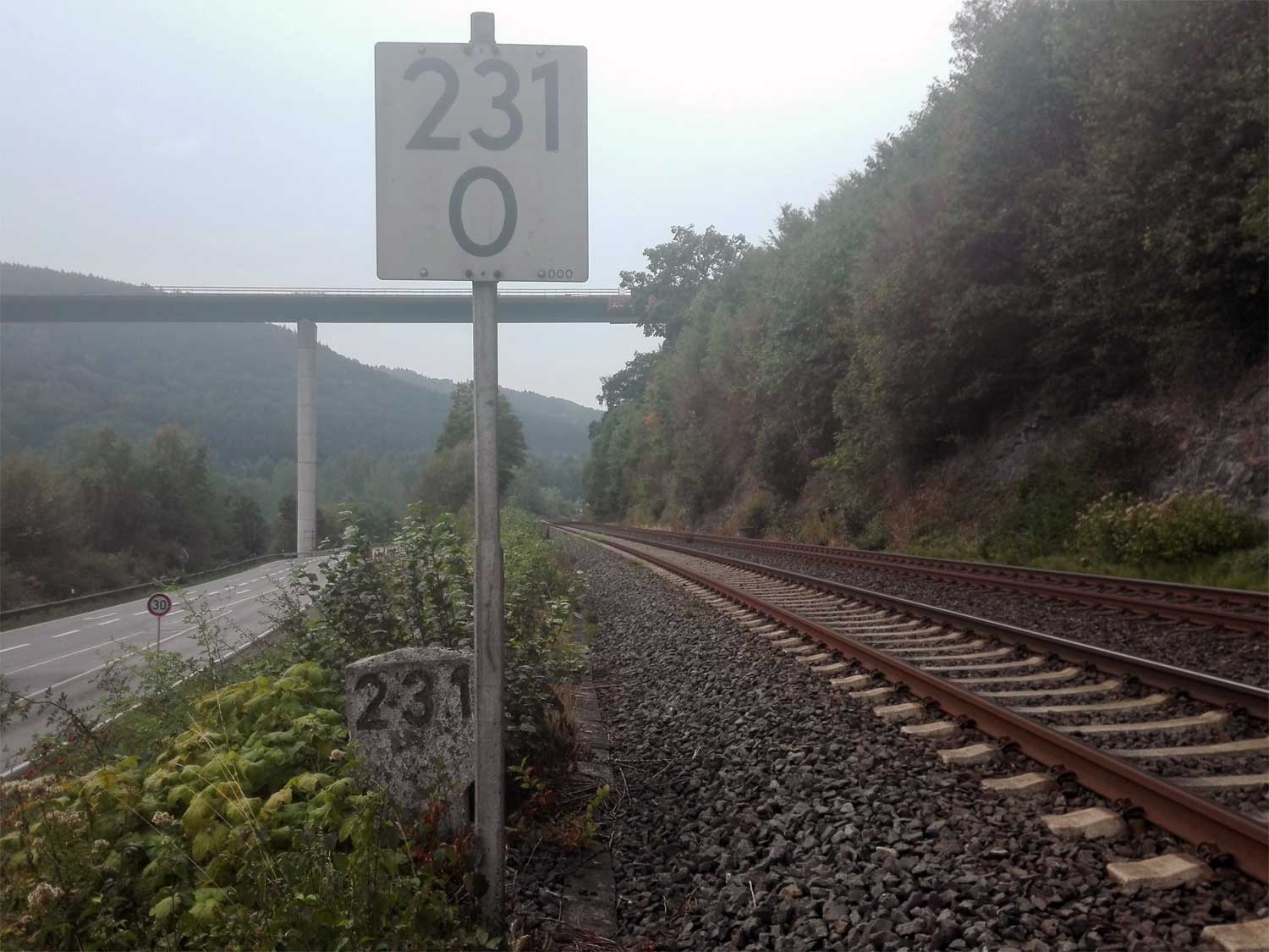 km 1,4 (Tafel links) gehört zur Strecke