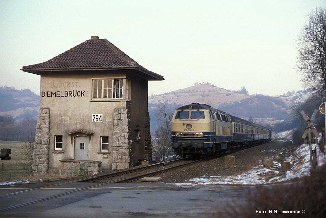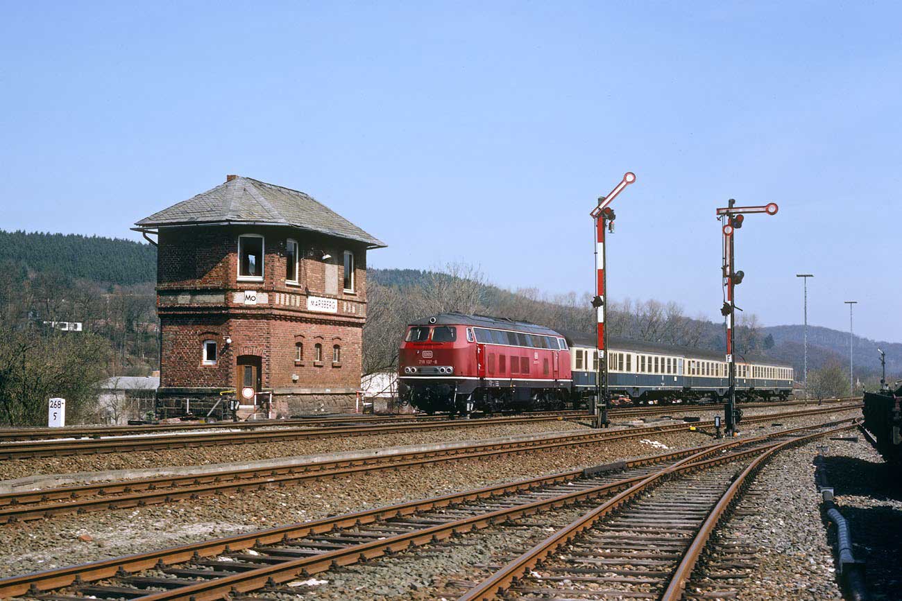 Kassel Hbf - Gießen - Friedberg (Hess) - Frankfurt (Main) West; 1978 verlängert bis Frankfurt (Main) Hbf