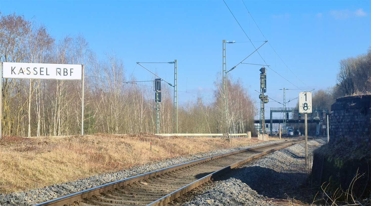 Rechts km 2,0 (Gegenrichtungsgleis) der Strecke Kassel Hbf - Frankfurt (Main) Hbf