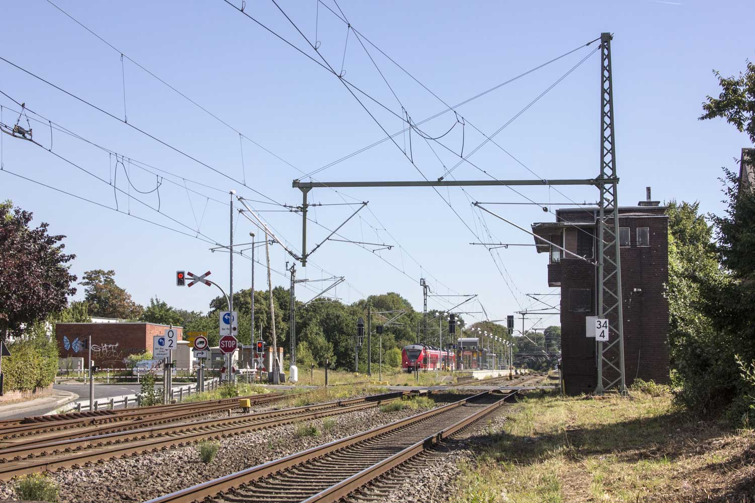 km 18,0 der Strecke Krefeld Hbf 0,0 - Mönchengladbach-Neuwerk 14,70 - Mönchengladbach Hbf 18,00 mit abgehender Strecke (Krefeld Hbf 0,0) - Mönchengladbach-Neuwerk 14,70 - Rheydt Vbf 28,5 | ||